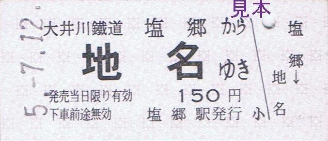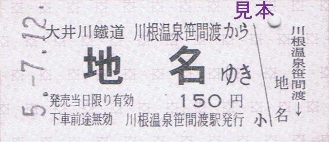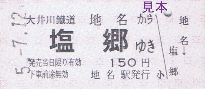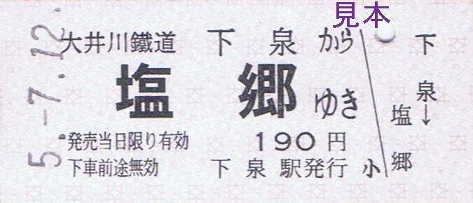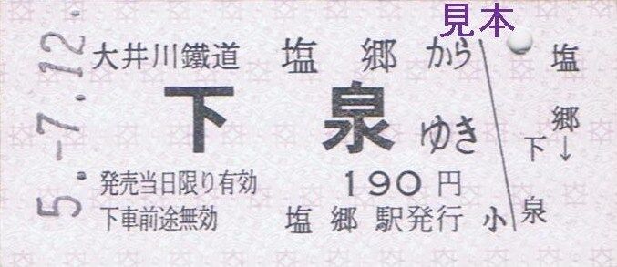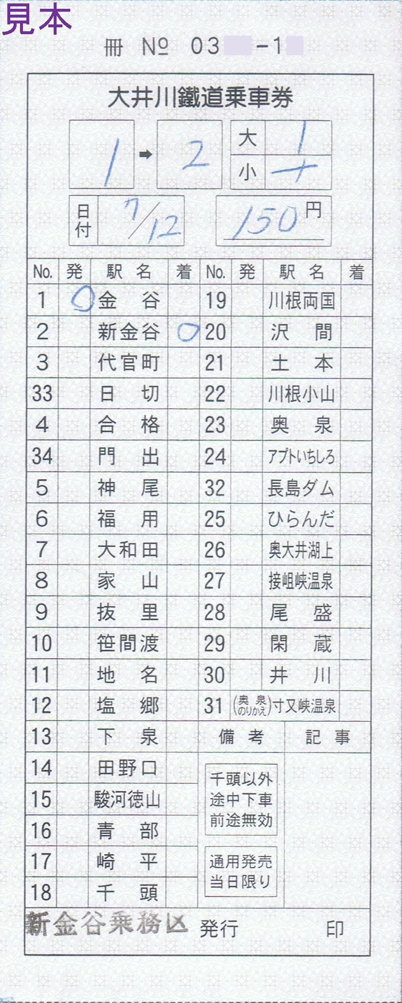 〔新金谷駅発行(新金谷駅、普通客レ車内)〕