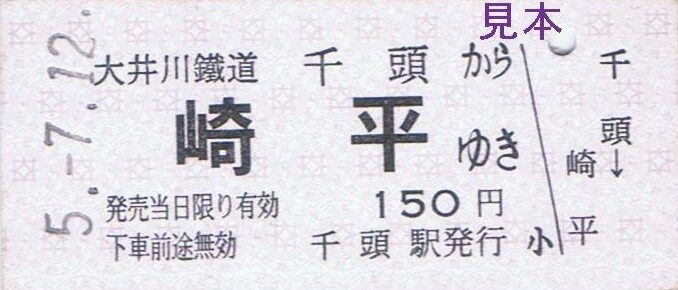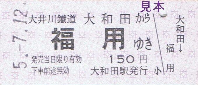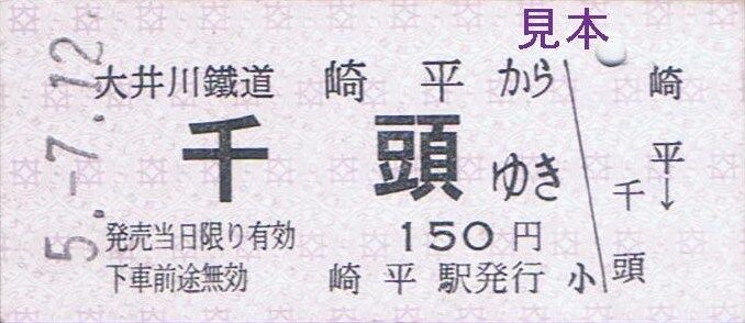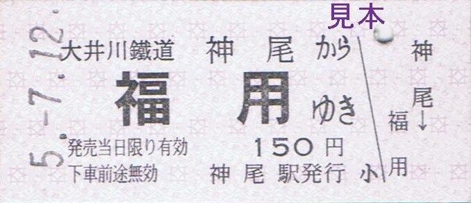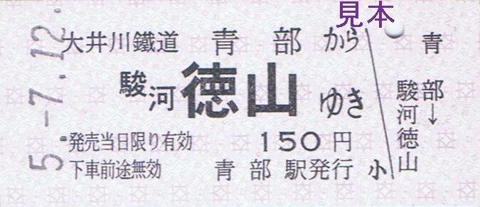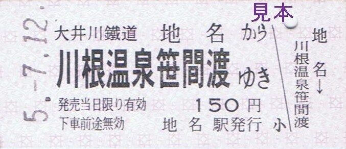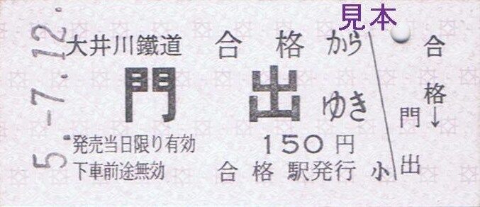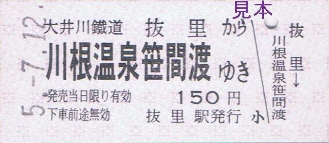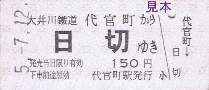 大井川本線代官町〜門出、神尾〜大和田、抜里〜千頭間の隣接する区間毎の特別地紋色のB型硬券片道乗車券『ひと駅きっぷ』を7月の客車普通列車運転日限定で新金谷駅にて復刻販売しました。