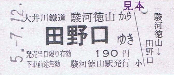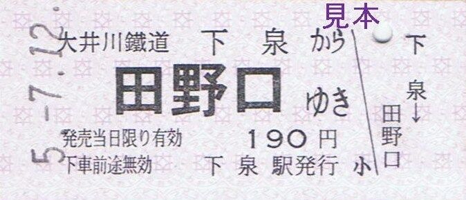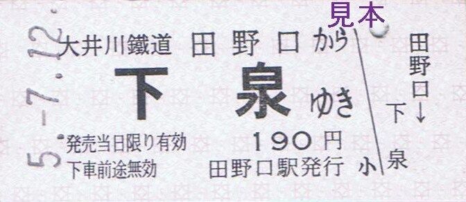 乗務区名補充。社名表記は『大井川鐵道』。普通客レ車掌から購入しました。大井川鐵道ホームページにおいては『きっぷ収集 客車普通列車には車掌がもちろん乗務。 車内改札で皆様のお席までお伺いしますので、車掌から乗車券をお求めいただけます。 無人駅からご乗車の際や、乗車券の収集など、是非車内補充券をお求めください。』と本券の収集をおすすめしていました。