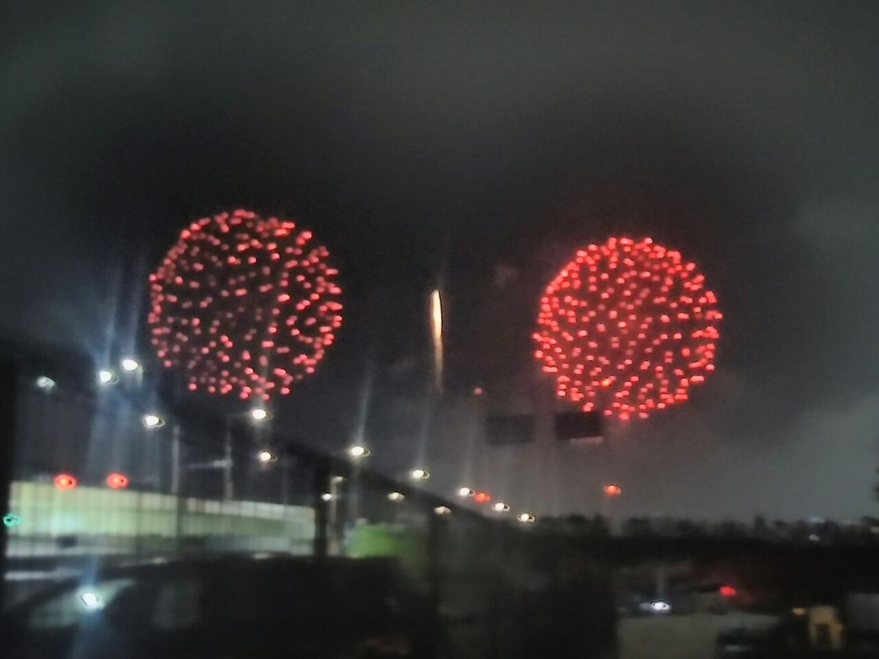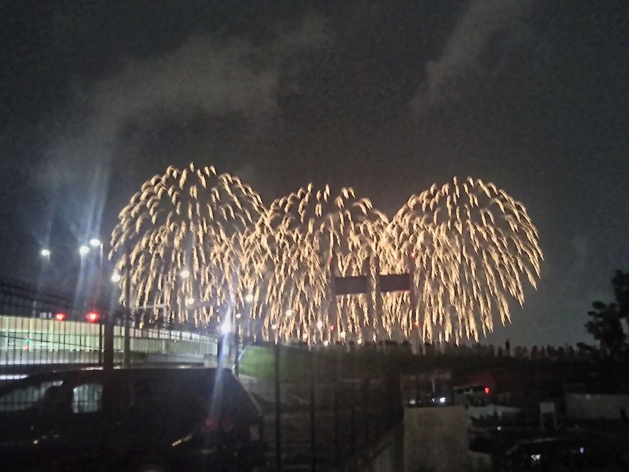 帰宅時に会場外の南多摩駅側・是政橋付近から撮影。