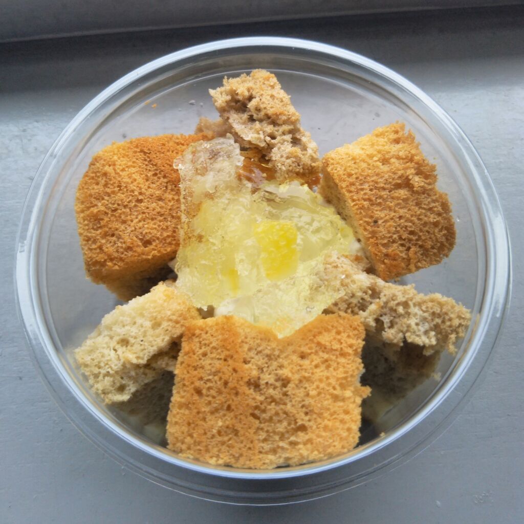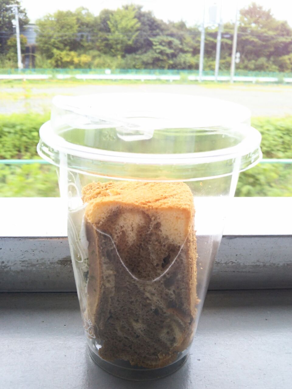 中身です。非冷房車内にて最適な冷たいお菓子です。《気まぐれシフォンケーキ》
