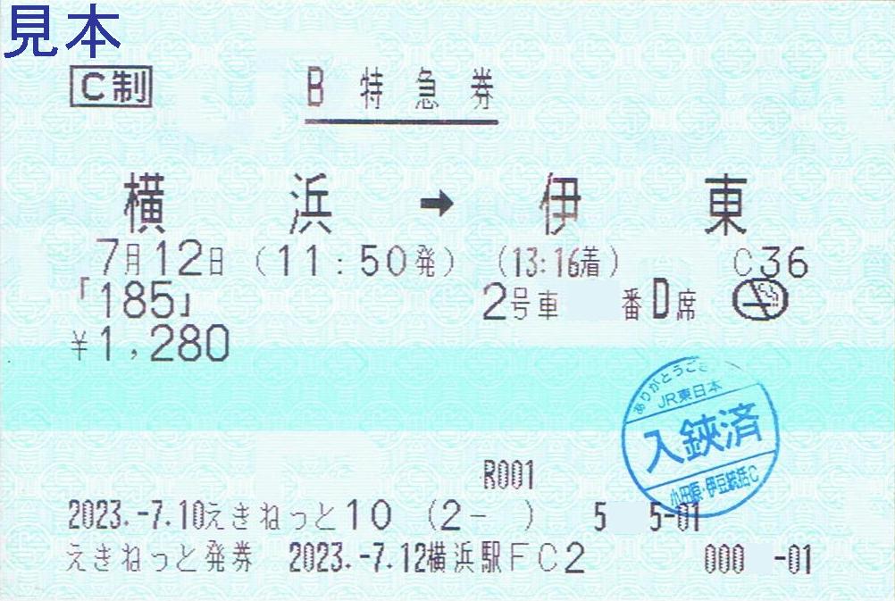 《横浜駅FC2発行 「185」B特急券(2023年7月12日分)》