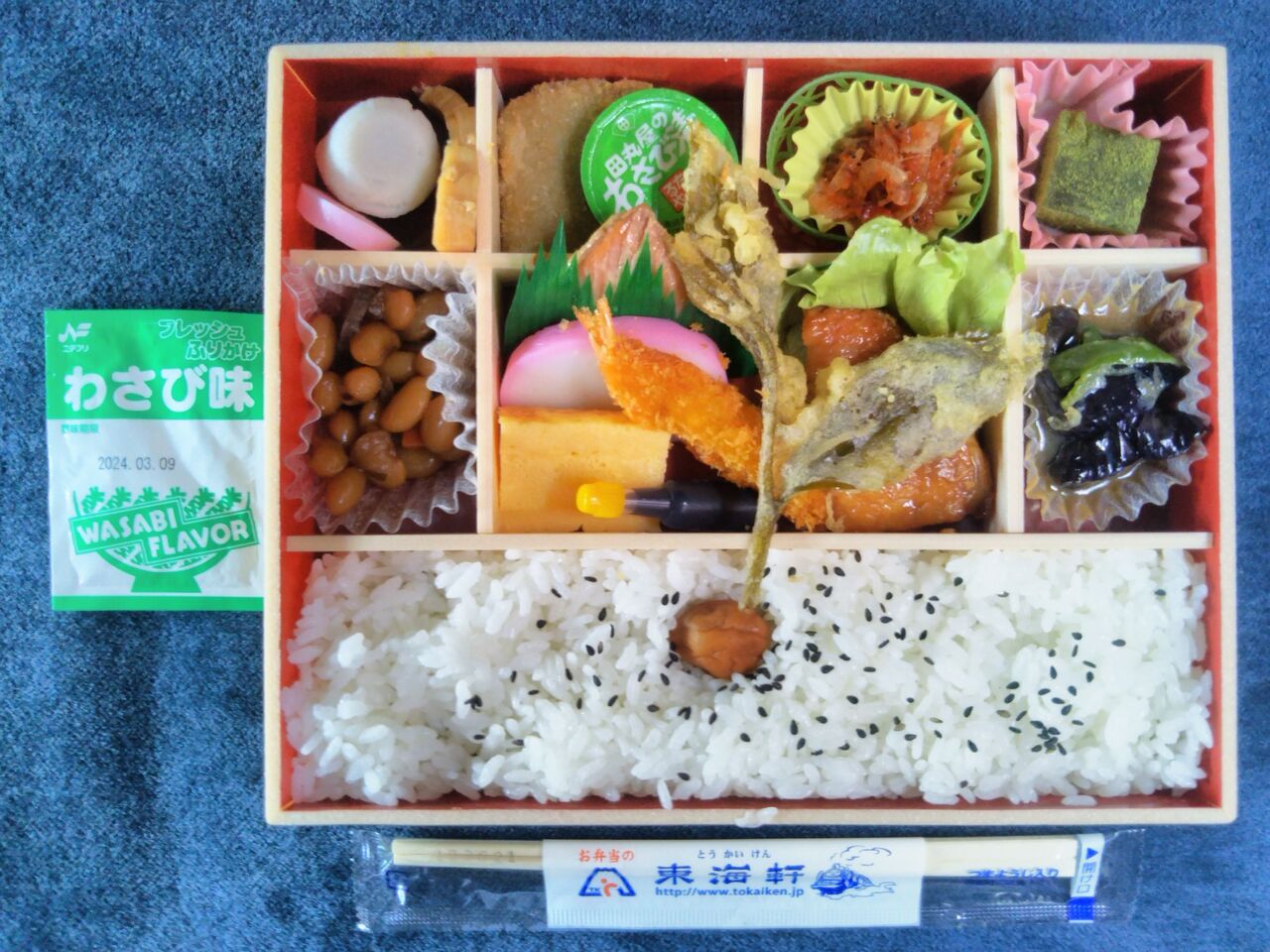 おかずの種類、ボリューム感があり、美味しい弁当です。付属するニチフリ食品のフレッシュふりかけわさび味まで静岡らしい内容。――――――――――――――――――――――――――――――――――――――