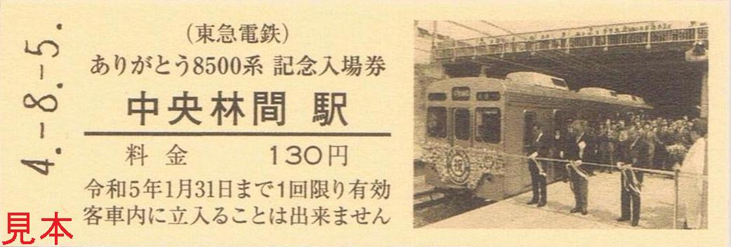 《ありがとう8500系記念きっぷ(2022年(令和4年)8月発売)》