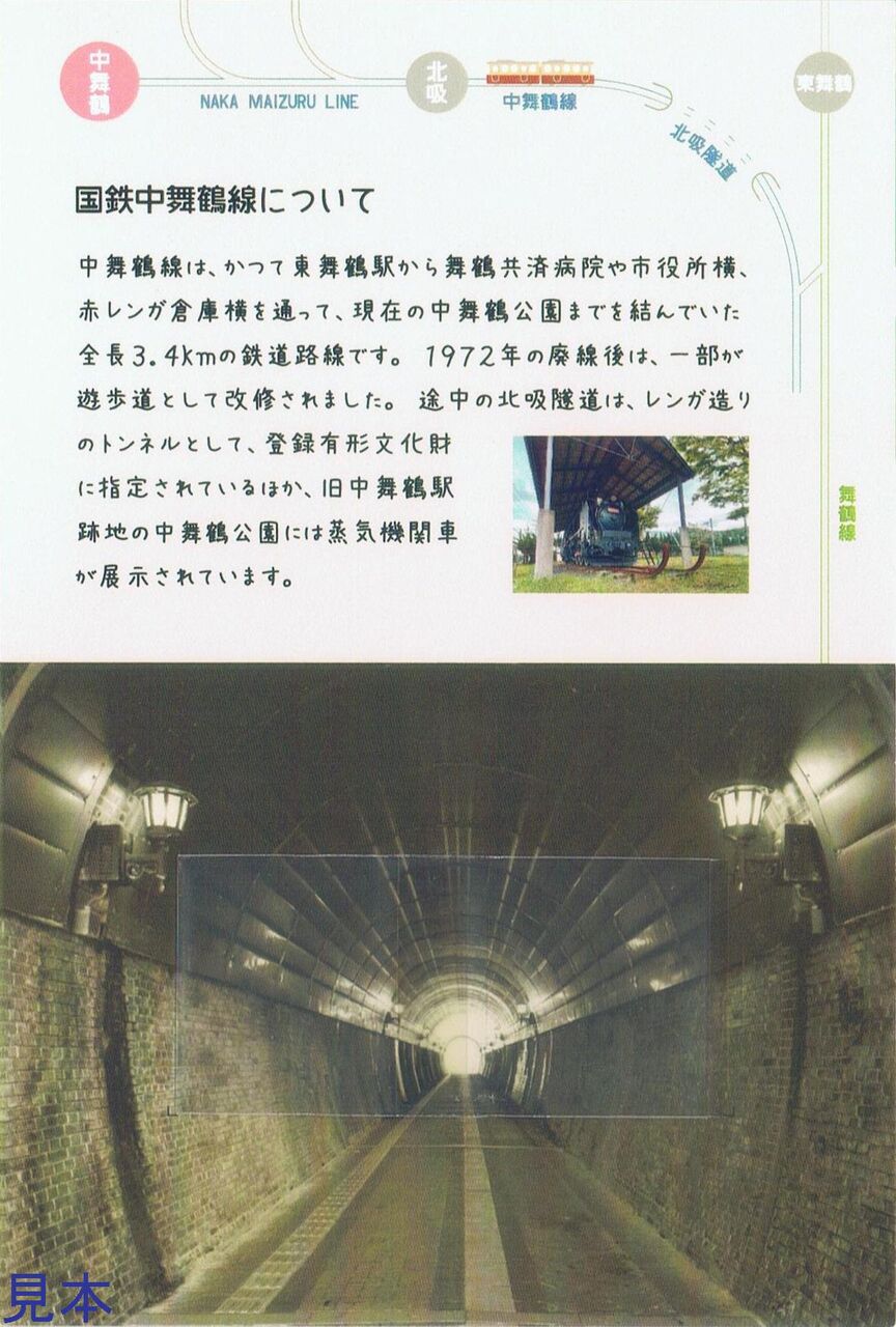 台紙内側で、中舞鶴線に関する説明が記載され、北吸隧道の写真が使用されています。