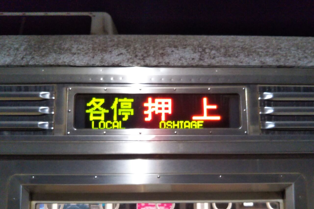 各駅停車押上行。長津田・中央林間側のヘッドマークです。半蔵門線水天宮前駅、清澄白河駅、住吉駅はこの列車の運転区間で数少ないホームドア未設置駅で、特に水天宮前駅には多数の撮り鉄がいました。《東京地下鉄(東京メトロ)半蔵門線住吉駅》