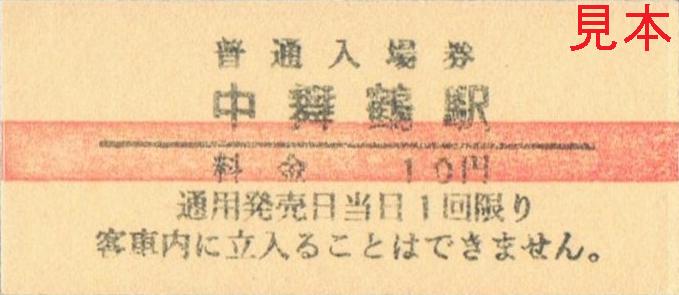 《懐かしの国鉄「中舞鶴駅」復刻入場券(2023年(令和5年)4月1日販売開始》