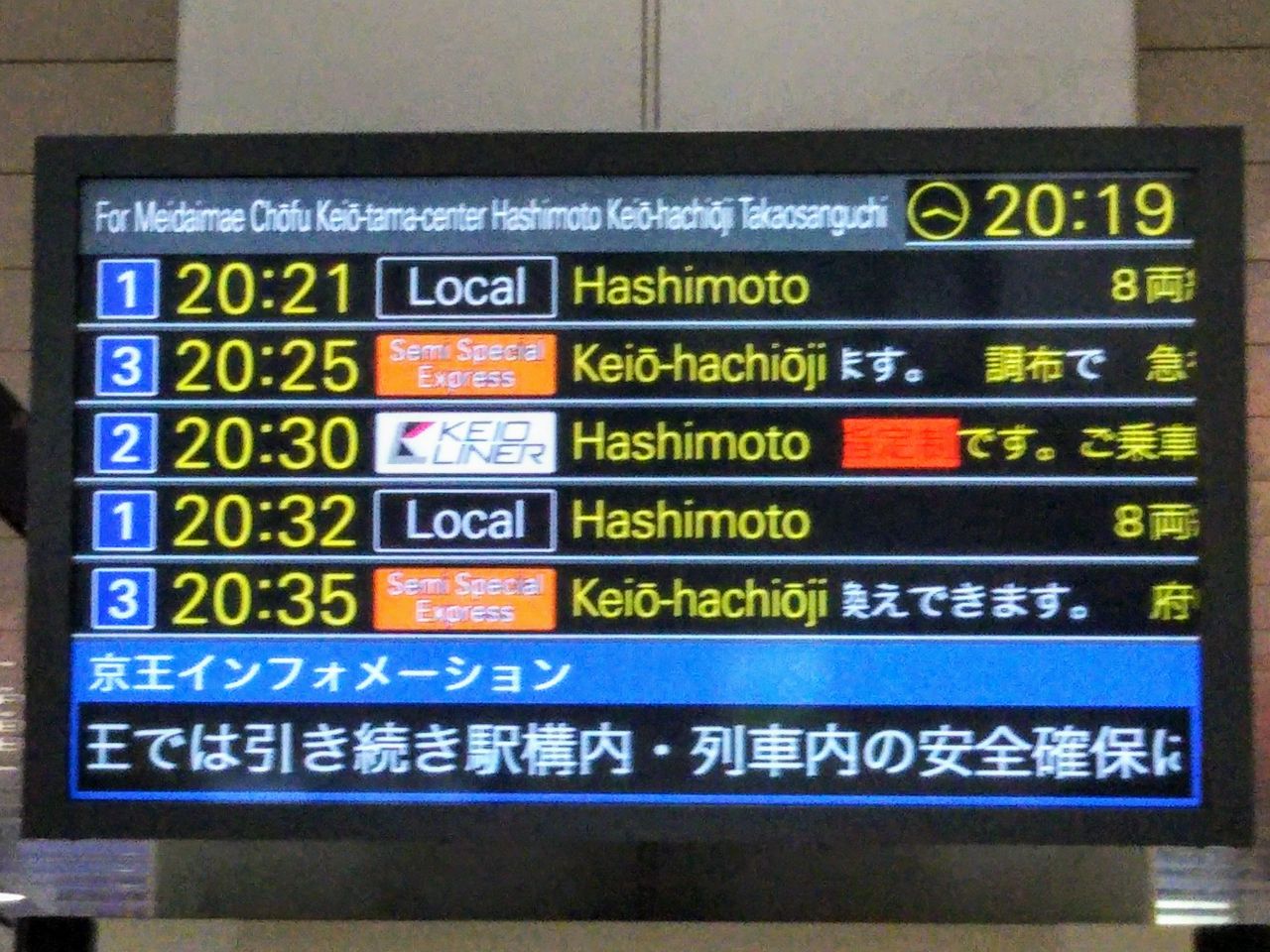 ¡¡¿·½É21»þ00ʬȯ¤Îµþ²¦¥é¥¤¥Ê¡¼5¹æŽ¥µþ²¦È¬²¦»Ò¹Ô¤Ë¾è¼Ö¤·¤Þ¤·¤¿¡£½éÆü2²ó¡¢ºòÆü¤Ë³¤4²óÌܤξè¼Ö¤Ç¤¹¡£¤½¤í¤½¤íÅ´Æ»¥Þ¥Ë¥¢¤¬¸º¤Ã¤Æ¤¤Æ¡¢ËÜÍè¤ÎÄ̶ÐÍ¢Á÷¤Î»Ñ¤¬¸«¤¨¤Æ¤¯¤ë¤³¤È¤ò´üÂÔ¤·¤Æ¤ÎºÆ¾è¼Ö¤Ç¤¹¡£¤Ê¤ª¡¢20»þ27ʬ¤Ëµþ²¦Àþ¿·½É±Ø¤ËÃ夤ޤ·¤¿¤¬¡¢¤½¤Î»þÅÀ¤Ç20»þ30ʬȯ¤Îµþ²¦¥é¥¤¥Ê¡¼3¹æŽ¥¶¶ËܹԤÏËþÀʤǤ·¤¿¡£