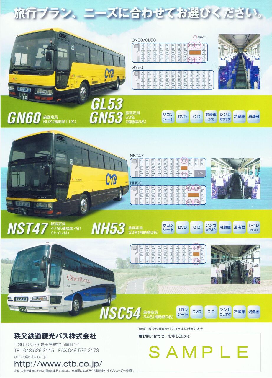 2023年に秩父鉄道が開催した『わくわく鉄道フェスタ』会場の秩父鉄道観光バスブースにて配布されていたA4サイズ・両面カラー印刷のリーフレット。現在では使われていない車種も記載されており貴重とのこと。======================================
