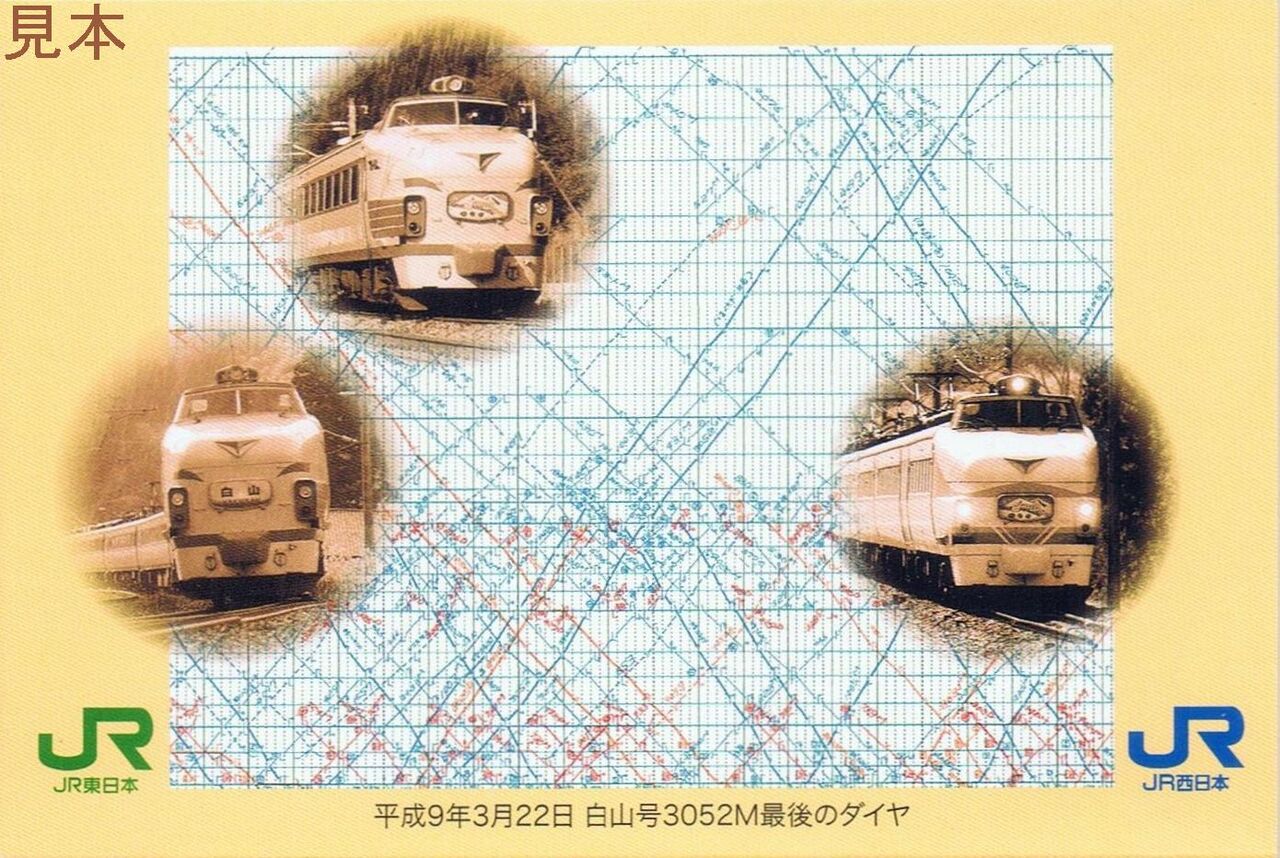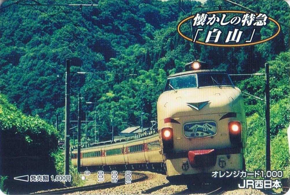 オレンジカードのデザインは、リバイバル白山号に使用された489系特急型電車(ボンネット型)。