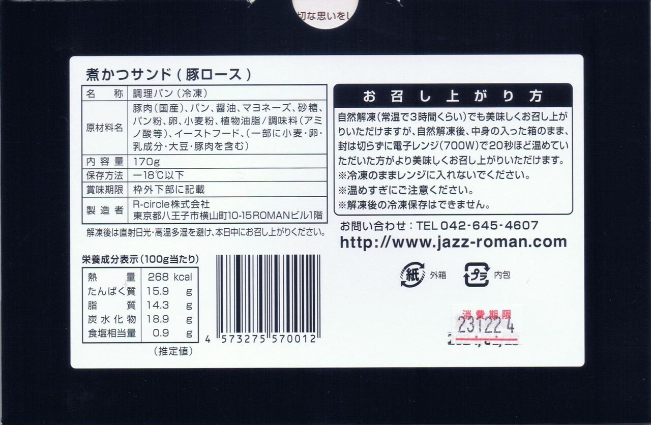 《R-circle株式会社(JAZZ BAR&CAFE ROMAN) 八王子名物 煮かつサンド》