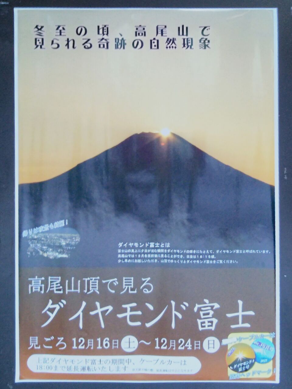 駅舎内に掲示されていたダイヤモンド富士のポスター。限定ヘッドマーク掲出についても記されています。