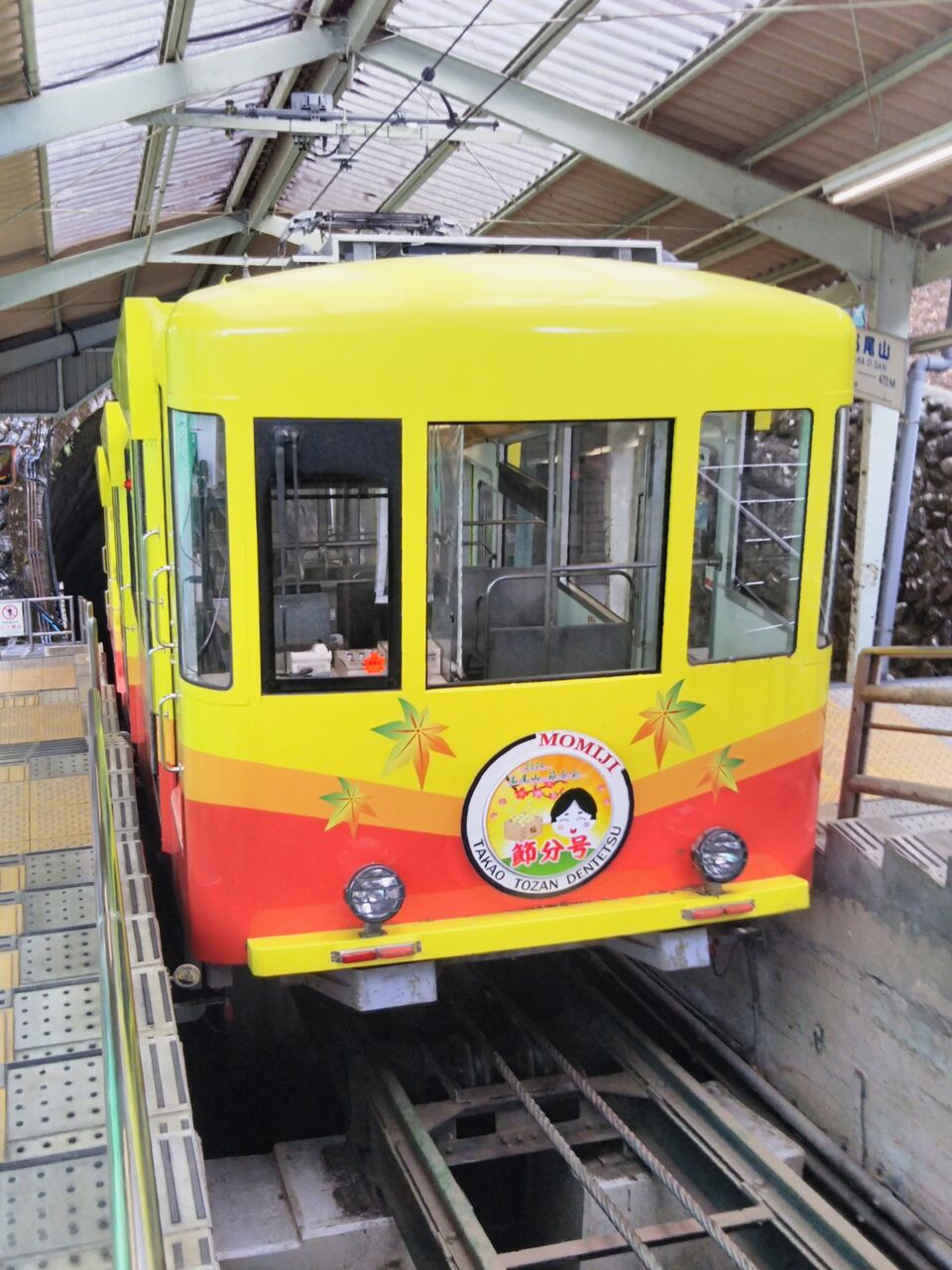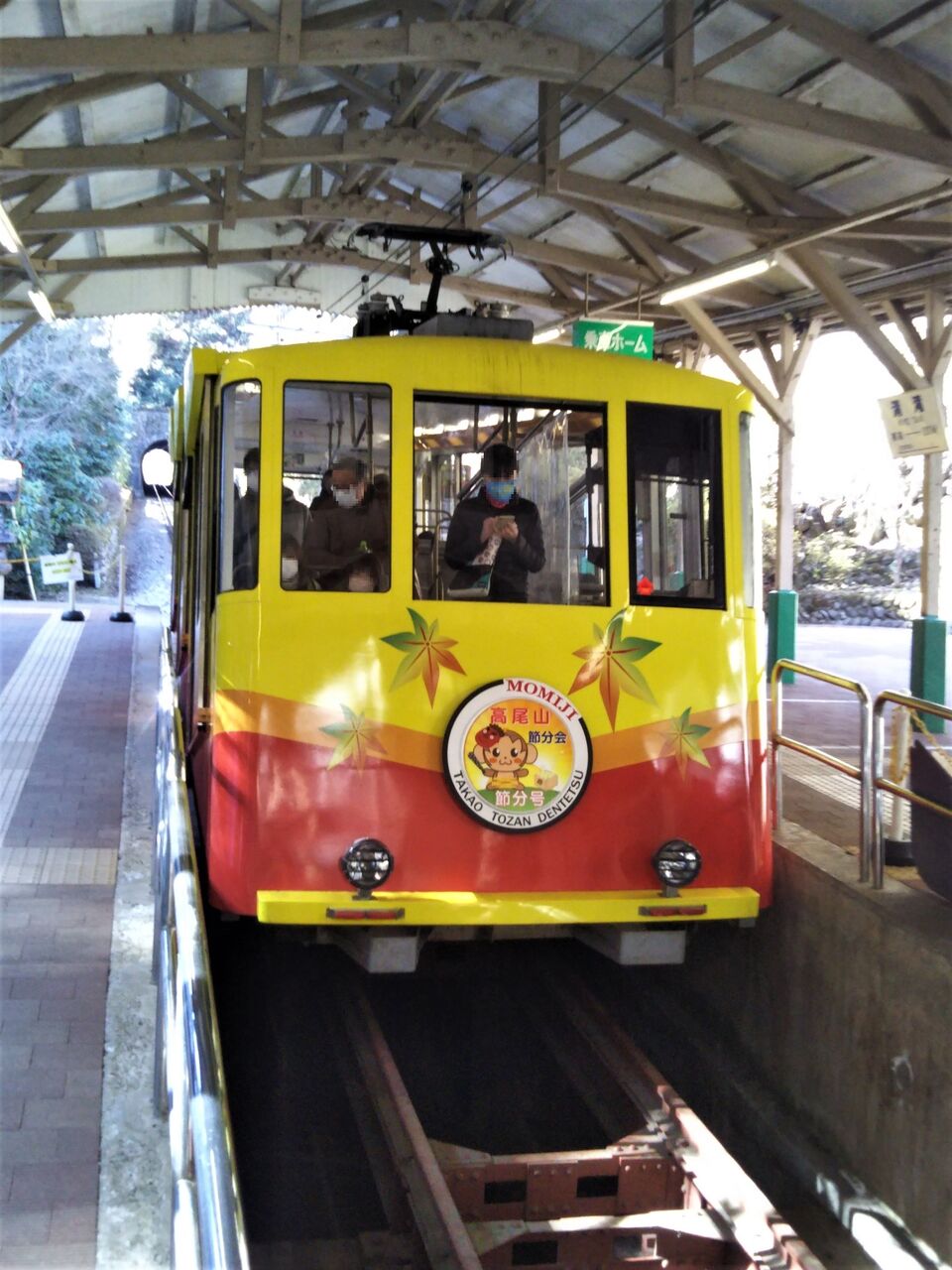 高尾山駅にて撮影した福豆号です。平日にしては外国人観光客で賑わい、利用者がいました。❲節分号❳