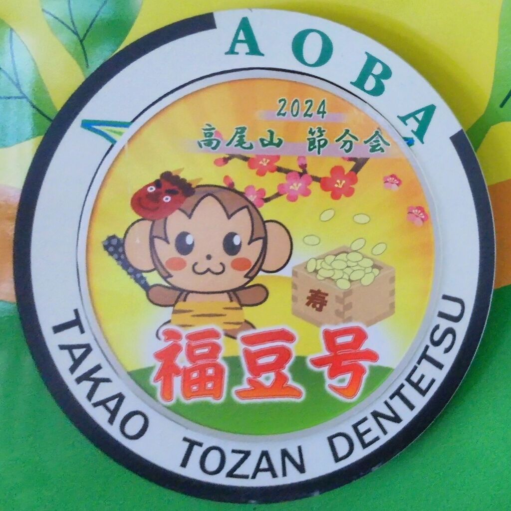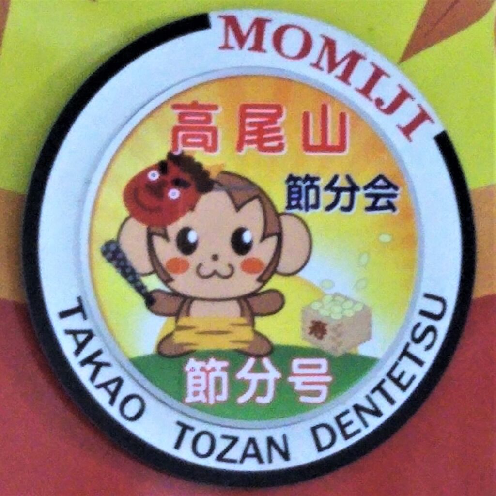 節分号のヘッドマークです。最近の高尾登山電鉄では同じ京王グループの御岳登山鉄道御岳山ケーブルカーのように時々、ヘッドマークを変えるようになりました。次回、同様のイベント実施時にはヘッドマークデザインを活かしてD型硬券の記念乗車券、ステッカー、ポストカードなど商品化して欲しいものです(御岳登山鉄道では2021年イベント時のヘッドマークを題材にした商品を御岳山駅で販売しています)。