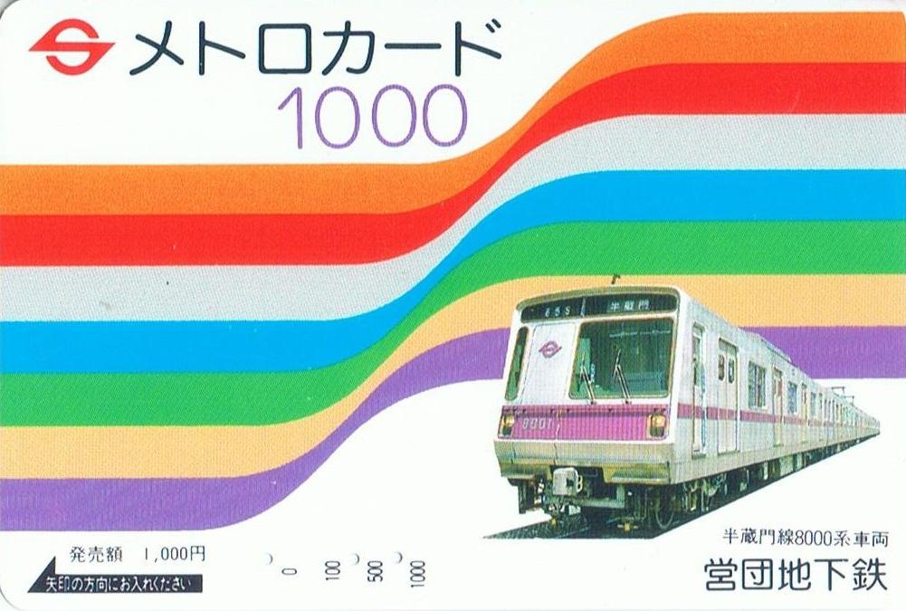 初期のメトロカード1,000円券標準柄は半蔵門線8000系デザインでした。
