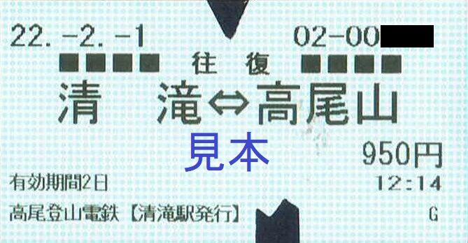 清滝駅券売機で購入した往復乗車券。実際に使用。鋏は左が清滝駅、右が高尾山駅のもので、清滝駅のものは2年前から変わっています。======================================