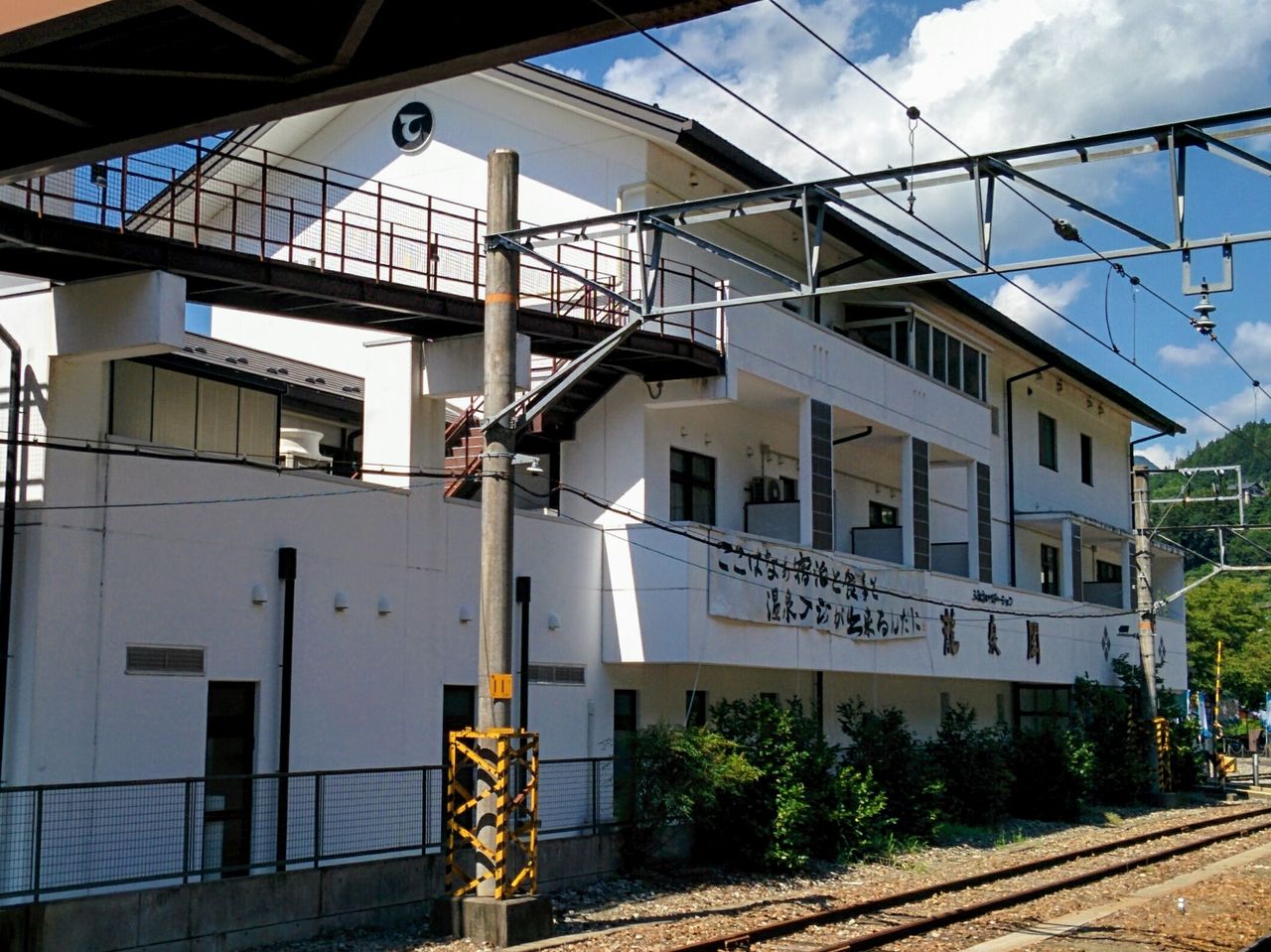 現在は無人駅となっていますが、駅舎は天龍村の温泉宿泊施設『ふれあいステーション龍泉閣』を併設しており、改札前に同施設の売店や飯田線関連商品を扱うカウンター(龍泉閣の受付)があり、賑わっています。飯田線80周年秘境駅号は、入れ換え作業のためこの駅に長時間停車するため、龍泉閣の日帰り入浴(税込300円。タオルは別)を利用しました。途中で温泉に入浴できる珍しい観光列車です。周りに高い建物がないので見晴らしが良いです。