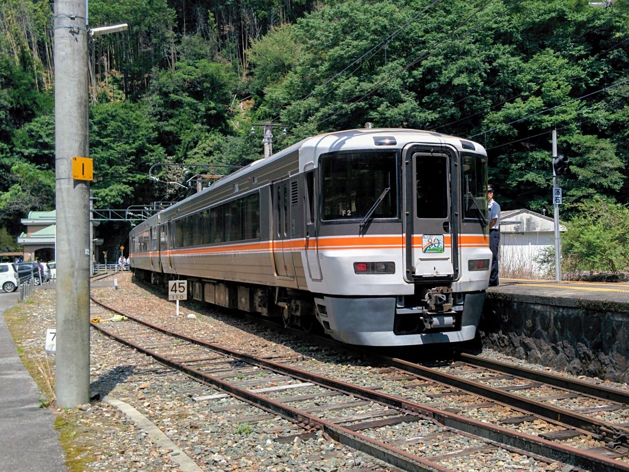 ホーム上では記念式典が行われており、撮影者で大混雑でした。普通列車(313系)との並び。