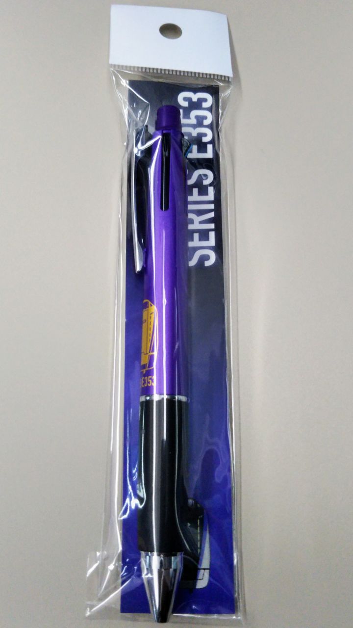 E353系の台紙付グッズについては、E353系タッチ&ゴー(写真左・税込800円)とE353系多機能ペン(写真右・税込1,300円)がありました。E353系デビュー記念商品です。〔E353系グッズ(2017年12月28日発売開始)〕