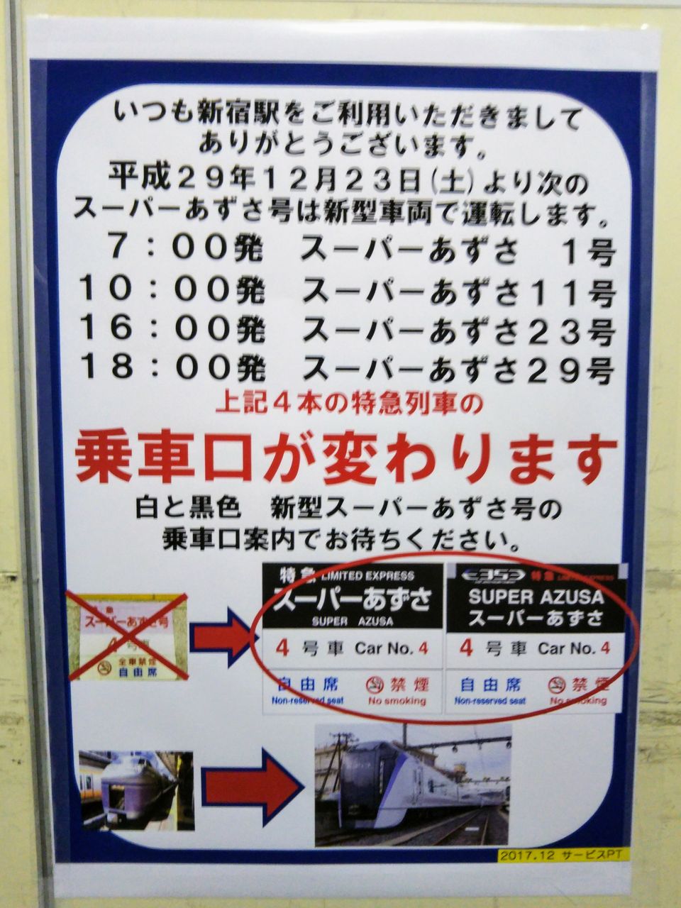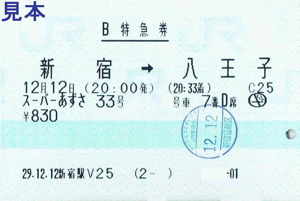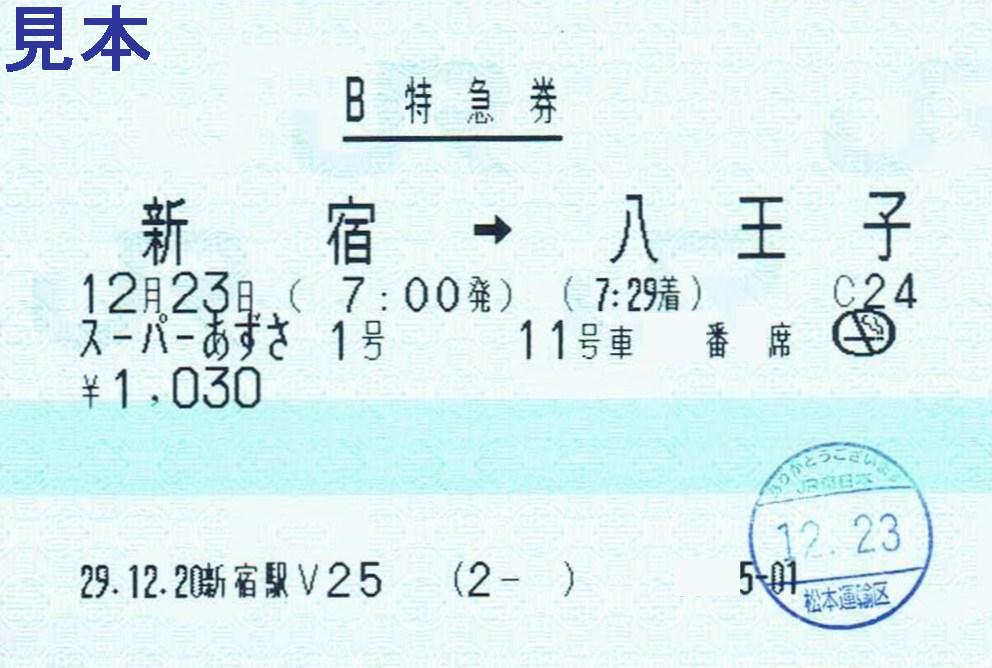《新宿駅V25発行 スーパーあずさ1号B特急券(2017年12月23日乗車分)》