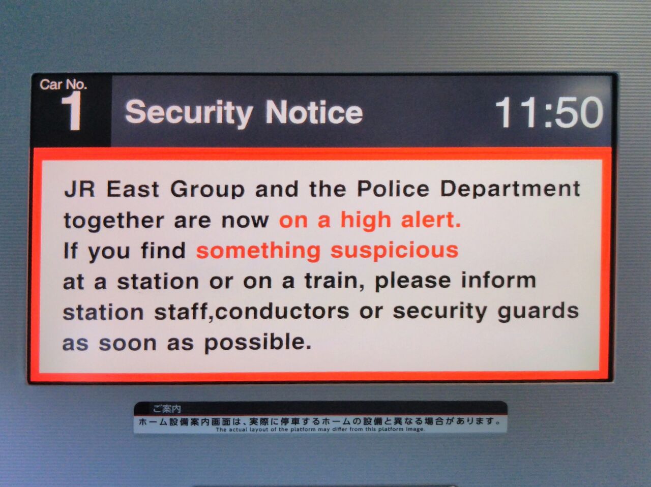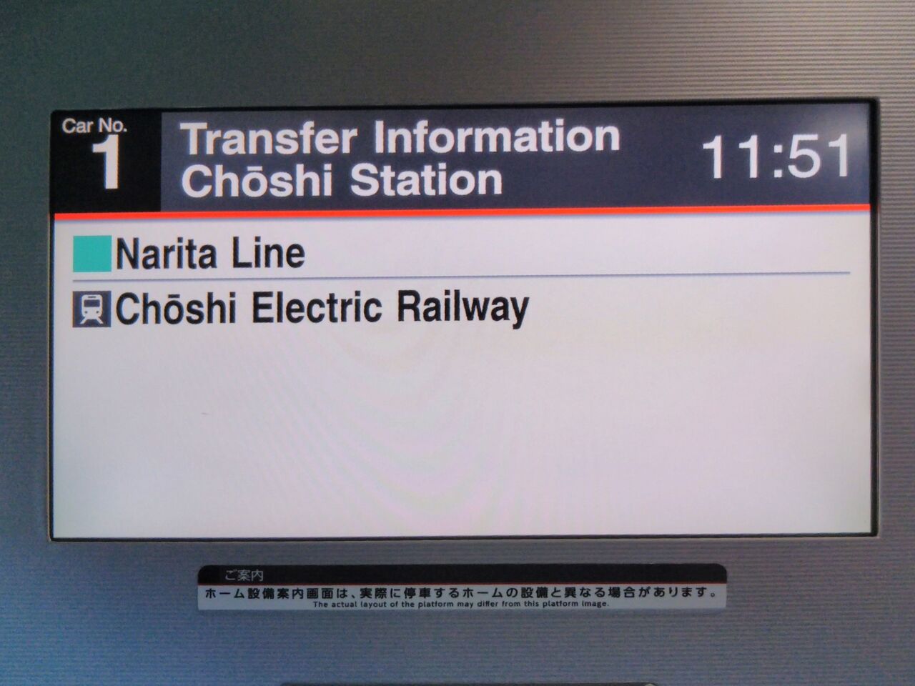 車内モニター等。表示はずっと『JR東日本』のままでした。
