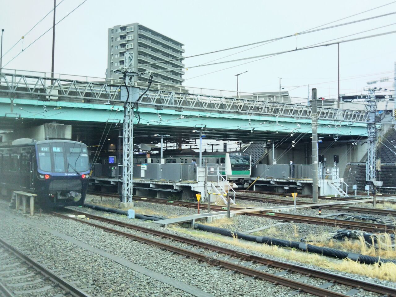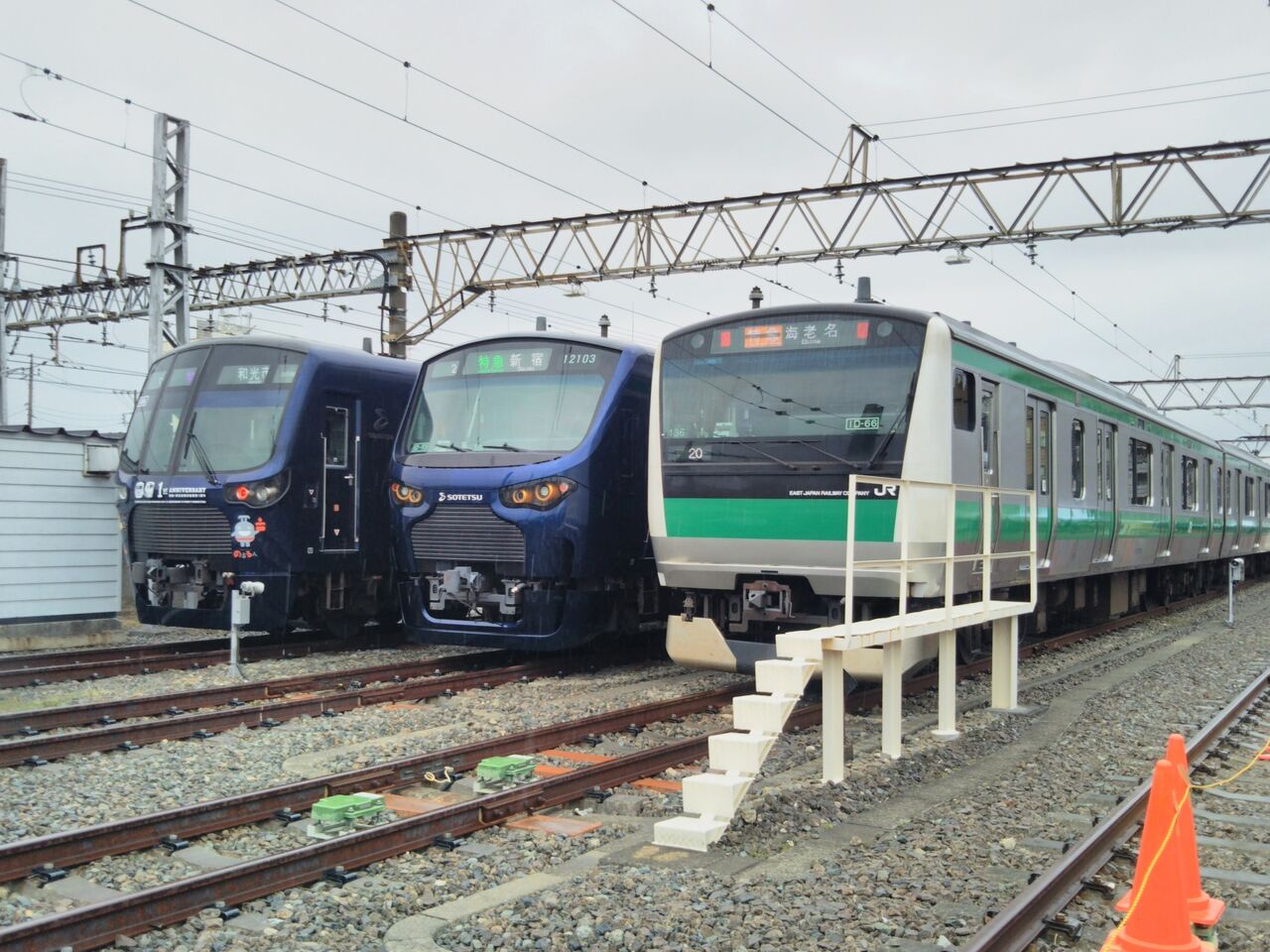 イベント列車起点となる相模大塚駅留置線の東端にて撮影。乗車後に一旦、少し東側(写真の手前側)に小移動しました。