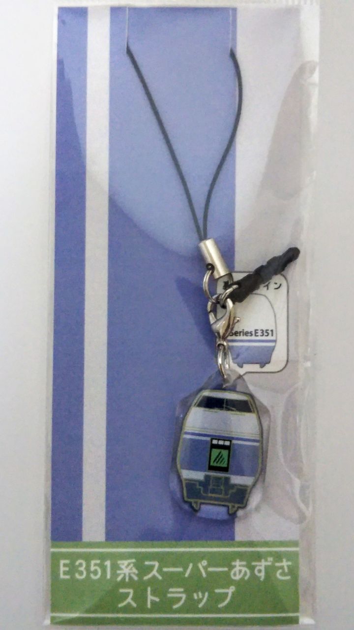 E351系の台紙付グッズについては、スーパーあずさイヤホンジャック付きストラップ(写真左・税込600円)とスーパーあずさメッキタッチアンドゴー(写真右・税込800円)がありました。なお、E353系運行開始前の2017年12月中旬時点における一部のスーパーあずさ号では、タッチアンドゴーが売り切れていました。来春のダイヤ改正時に引退しますが、現時点におけるE351系関連商品が少ないので、よく売れるのでしょう。〔E353系グッズ(2017年12月23日発売開始)〕