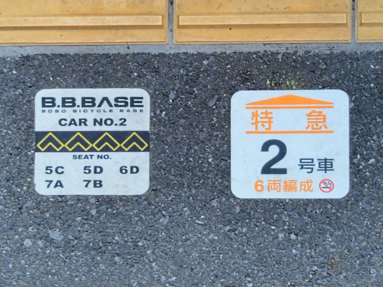 銚子駅に到着。ホーム上の乗車位置表示が新しくなっていました。