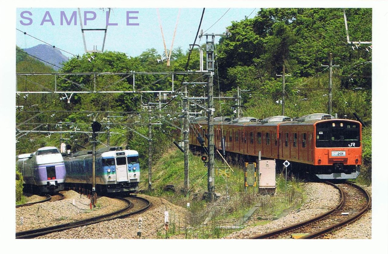 久しぶりに発売日ずらしの複数バージョンという販売形態。税込1,200円。東京、新宿、八王子、甲府の駅弁売店(一部)で発売。最近のNREの記念弁当が『お品書き省略』で1,200円超えのケースが多いものだから、駅弁マニアとしては非常に残念に思っていましたが、今回はポストカード(写真右)が付きます。しかも、201系が同車引退時のヘッドマークを掲出している貴重なシーンです。