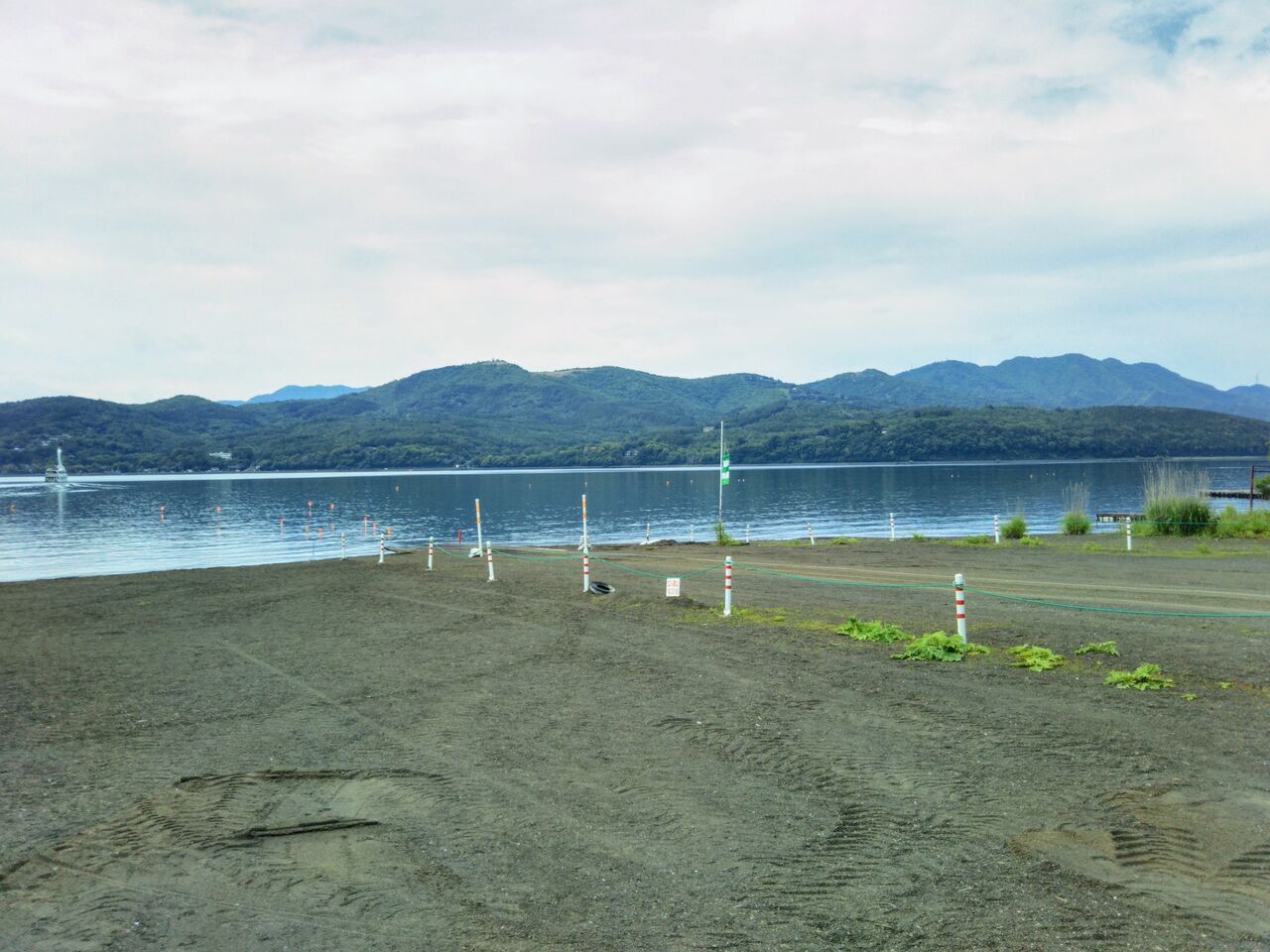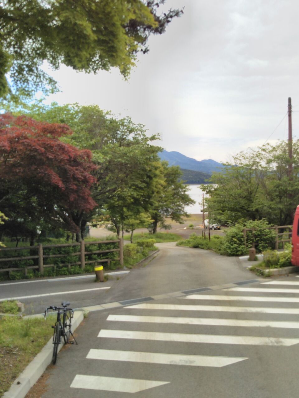 公道の走行距離はわずか数百メートルで、直ぐに左折し、山中湖畔の駐車場横を抜けて湖へと向かいます。意外と狭い道を抜けていく点が面白いです。