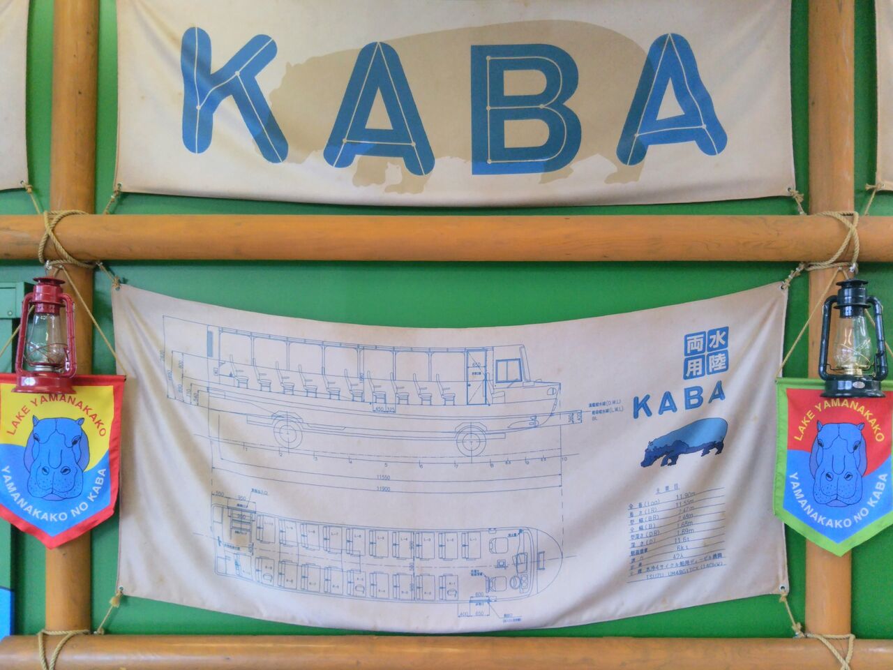 富士急バスは山中湖の旭日丘バスターミナルを起点に水戸岡鋭治氏デザインの水陸両用バス『YAMANAKAKO NO KABA(山中湖のカバ)』を運行しています。富士急バスが社名変更(2019年4月)となる前の富士急山梨バスが2011年4月30日に運行開始しました。