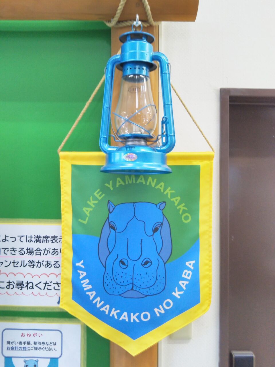 森の駅旭日丘の1階と2階に設置されていたYAMANAKAKO NO KABAチケット売場の看板です。