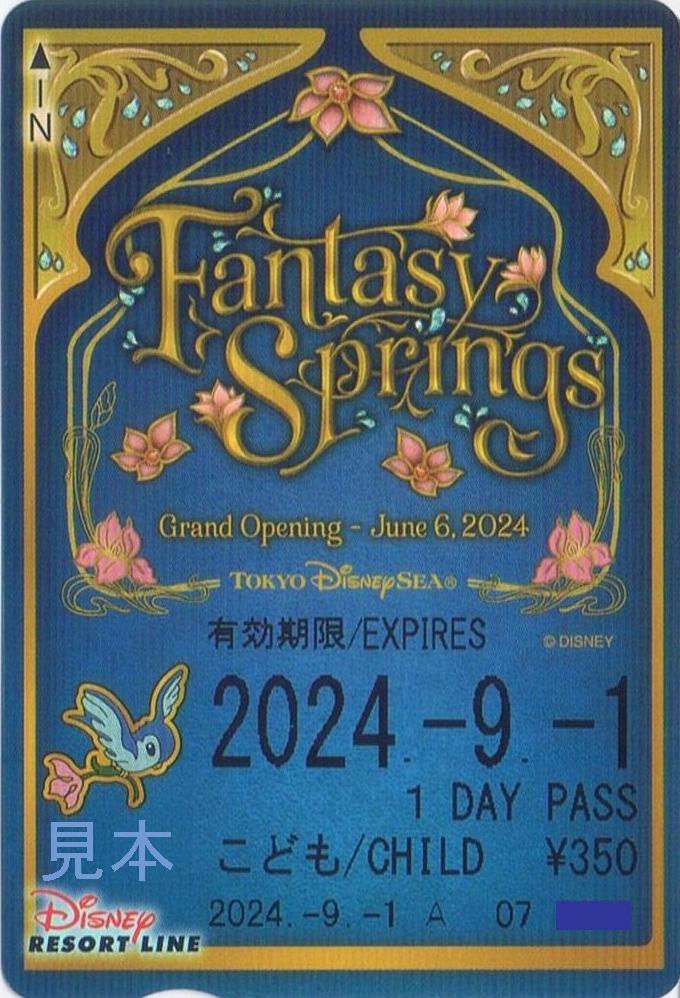 『ファンタジースプリングス』オープン記念のフリーきっぷ第1弾です。翌月からは個別のテーマ毎に発売されました。《ファンタジースプリングスの世界観をデザインしたフリーきっぷ(2024年5月28日発売開始)》