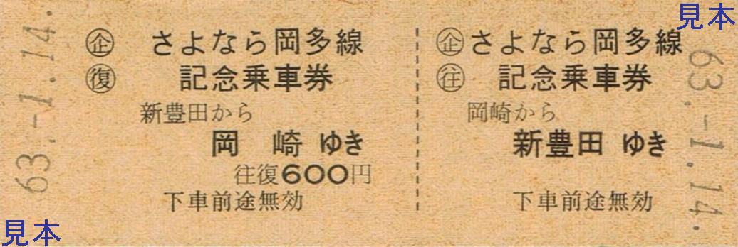 《さよなら岡多線記念乗車券(昭和63年1月)》