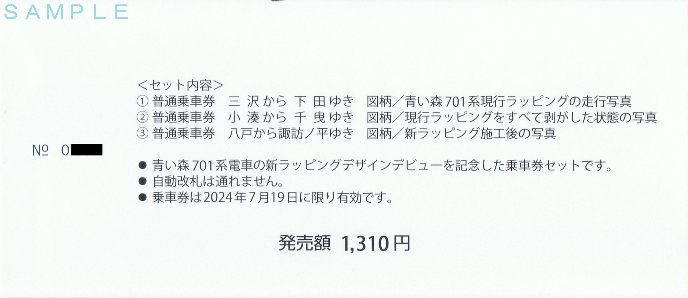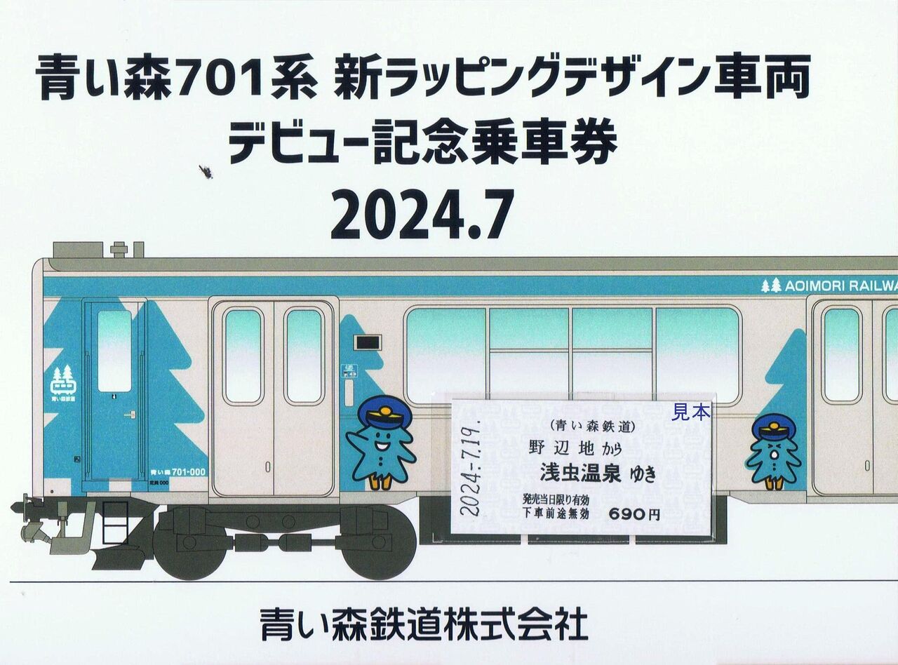 《青い森701系新ラッピングデザイン車両デビュー記念乗車券・軟券タイプ(2024(令和6)年7月19日発売)》