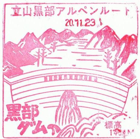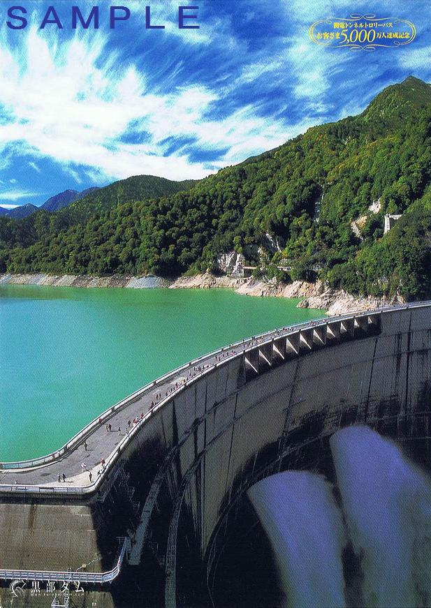 先述のピンバッジ購入時に黒部ダム売店で貰ったもの。おそらく5,000万人達成直後は乗客に配布されたりしたのではないでしょうか。車両と黒部ダムの2枚セットで透明のビニールに入っていました。立山黒部アルペンルートの乗り物は、トンネル内を走行するものが多く、ルート内のお土産用として販売されている絵はがきに登場するのは高原バスかロープウェイくらいですので、このようにトンネル内でもきれいに写っている写真をお土産用絵はがきに使用して欲しいものです。
