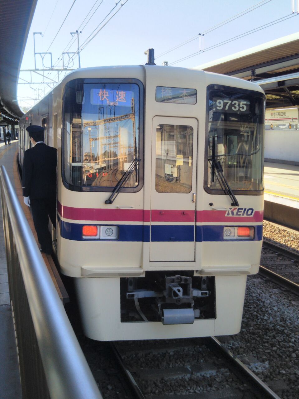 相模原線京王稲田堤駅で撮影した快速・橋本行運用に就くビックリマントレイン。相模原線〜東京都交通局新宿線直通の区間急行や快速運用が中心のようです。ヘッドマーク装着はありません。京王電鉄では時々、目の愛護車両などのヘッドマーク未装着の列車があります。
