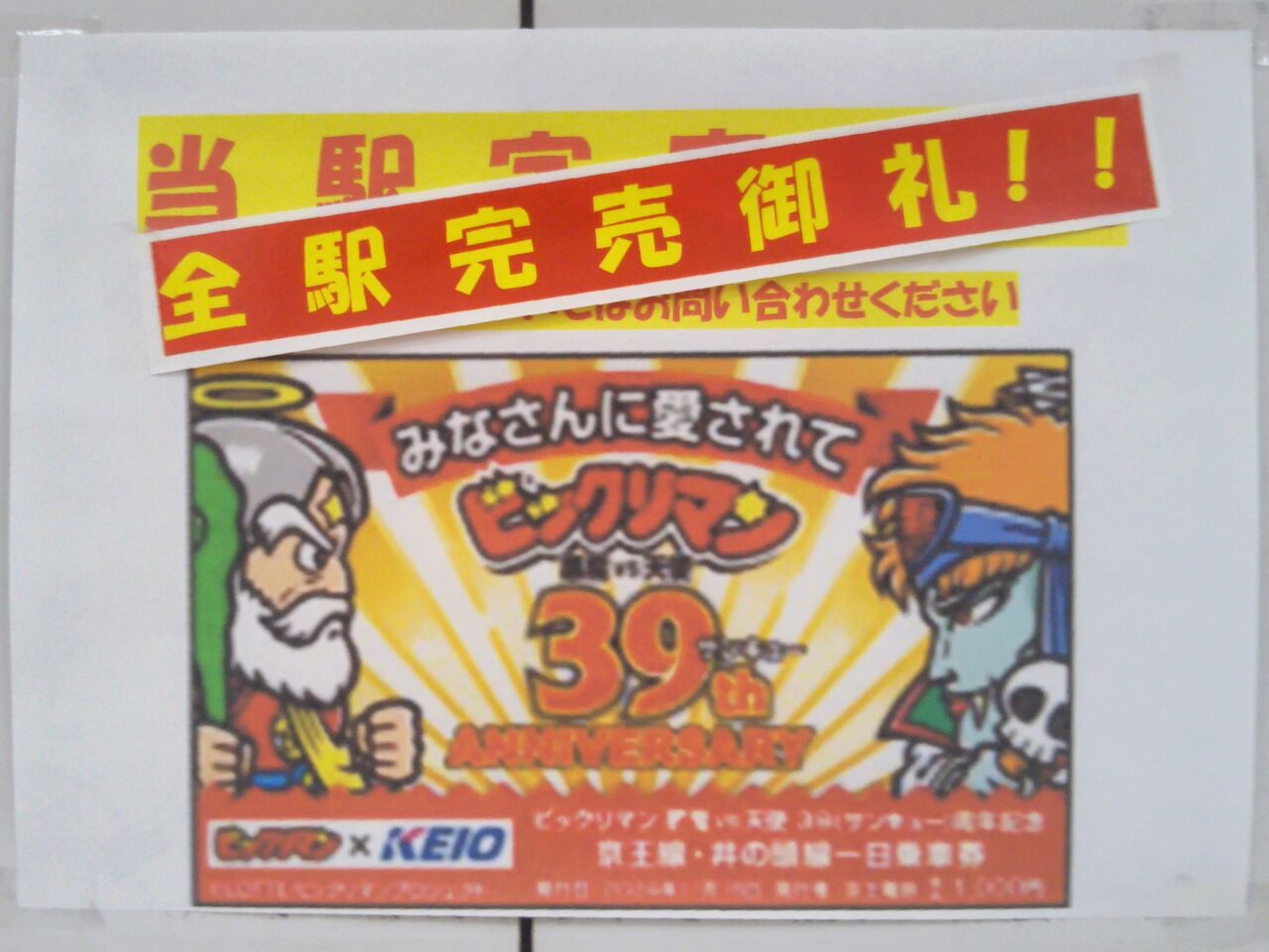 記念乗車券発売とイベント全体のポスター。今回、記念乗車券は仕事の時間と被り購入出来ませんでした。初日の昼頃には完売した様で、ビックリマンの人気が高いことが分かりました。京王電鉄の記念乗車券はだいたい購入していますが、買えなかったのは井の頭線急行運転開始50周年記念乗車券以来だと思います。