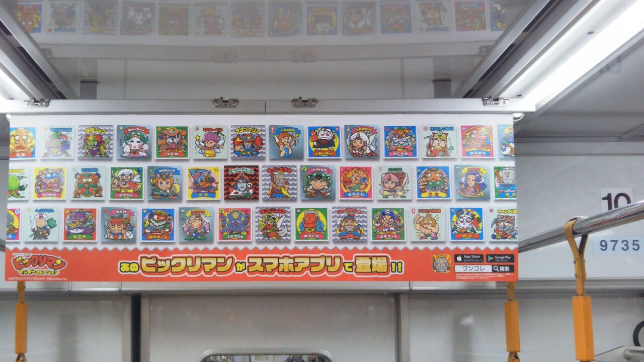 車内のポスターは全てビックリマンのもの。