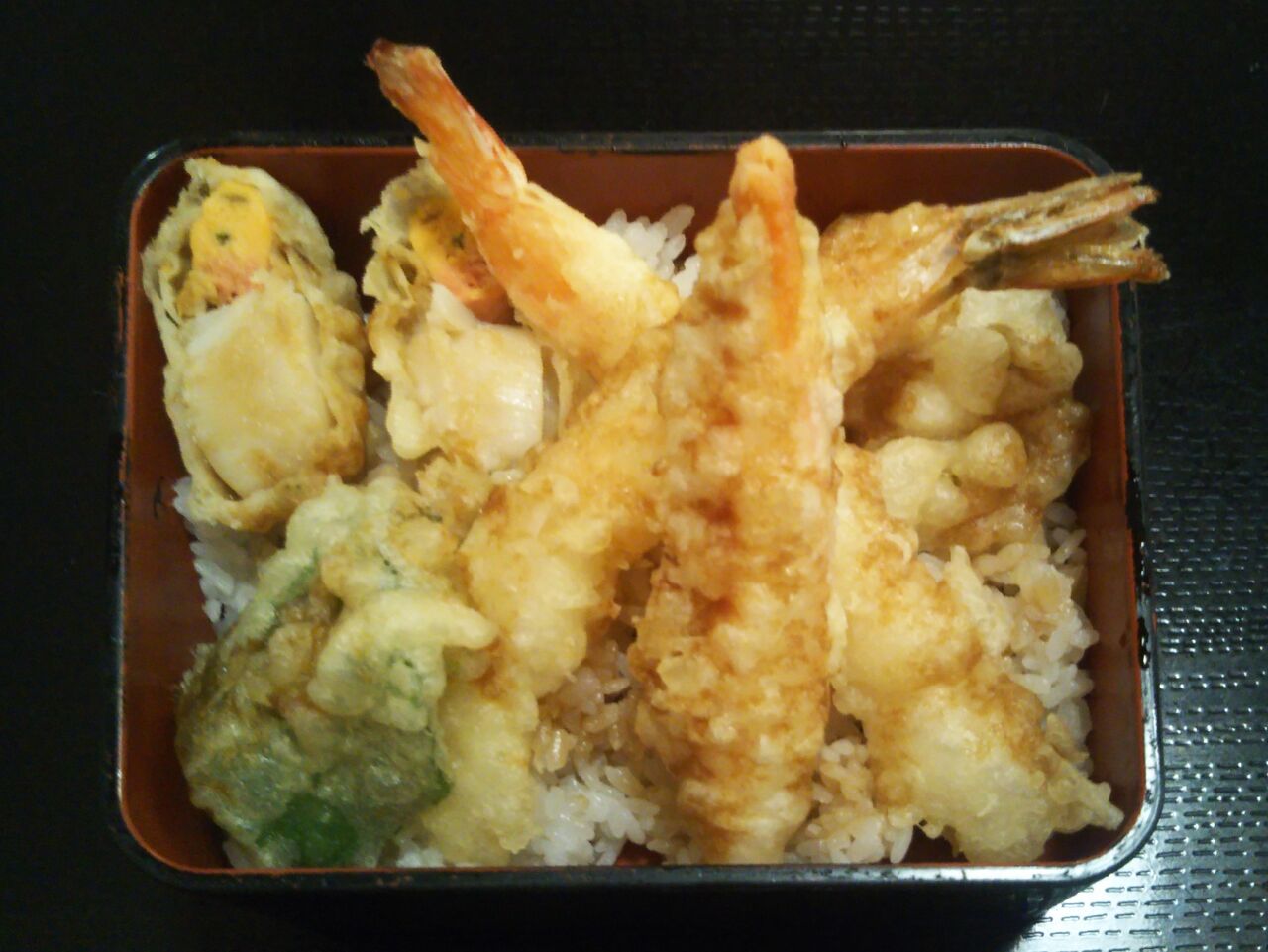 我が家のほぼ毎年の恒例行事で(中略)晩御飯はお食事処で食べました。写真は『海鮮天重とさっぱり柚子おろしそばセット』(税込1,750円)の『海鮮天重』とセットの『お漬物』。天重の天ぷらは海老(二尾)、ズワイガニ、帆立、野菜です。