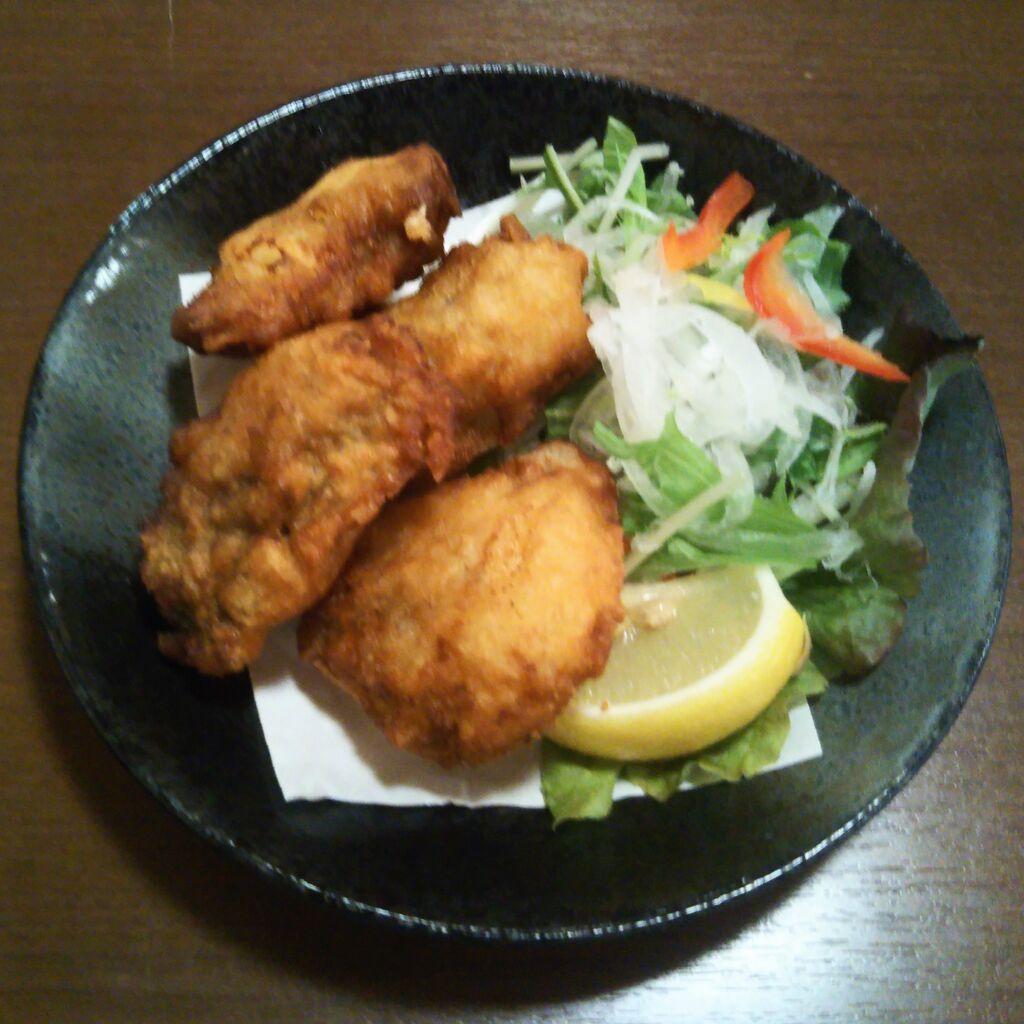 写真は期間限定商品の『あんこうの唐揚げ』(税込800円)。パフェは無くなったけれど単品メニューは相変わらず充実していました。