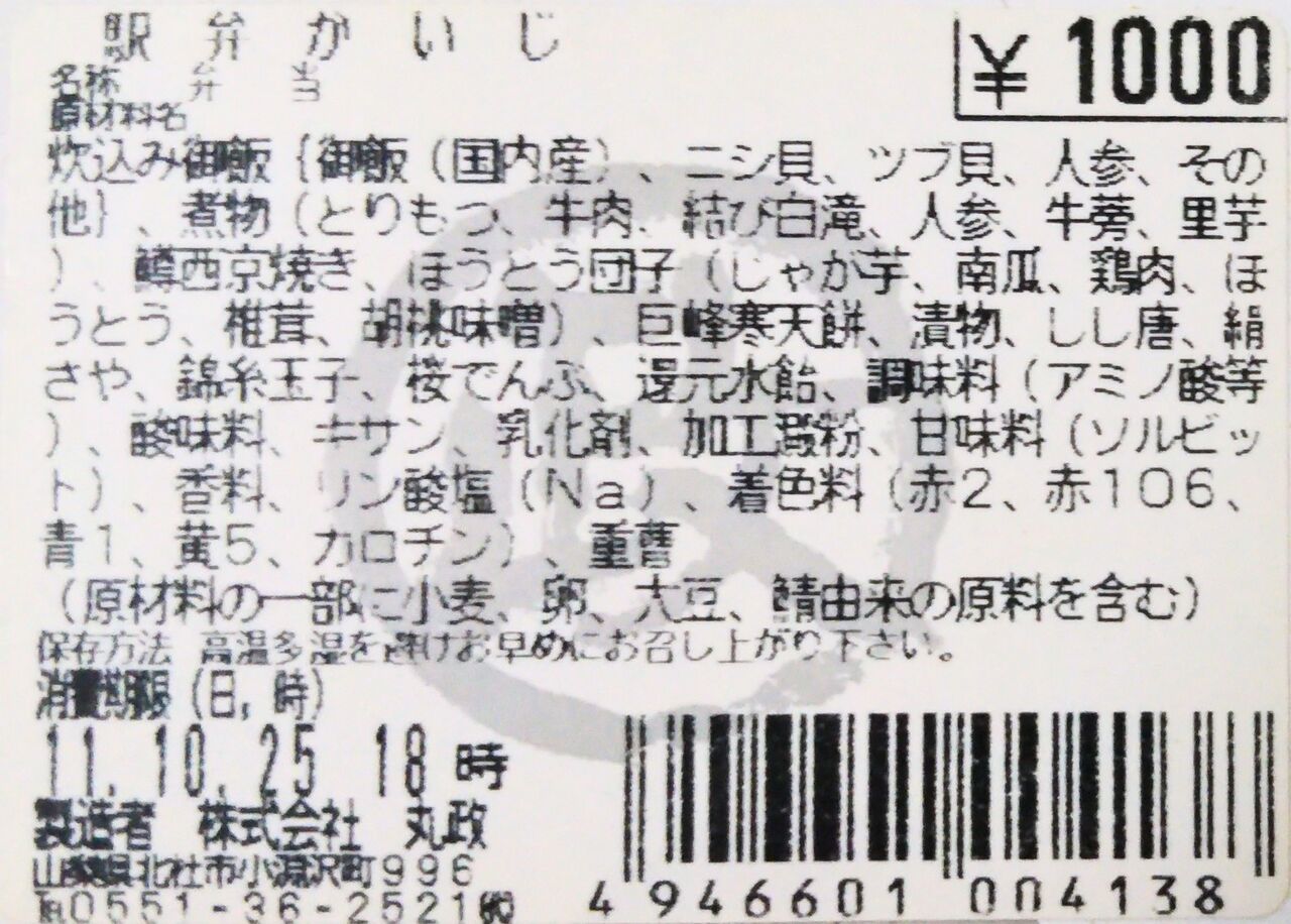 《丸政 駅弁かいじ(2011年10月25日購入)》