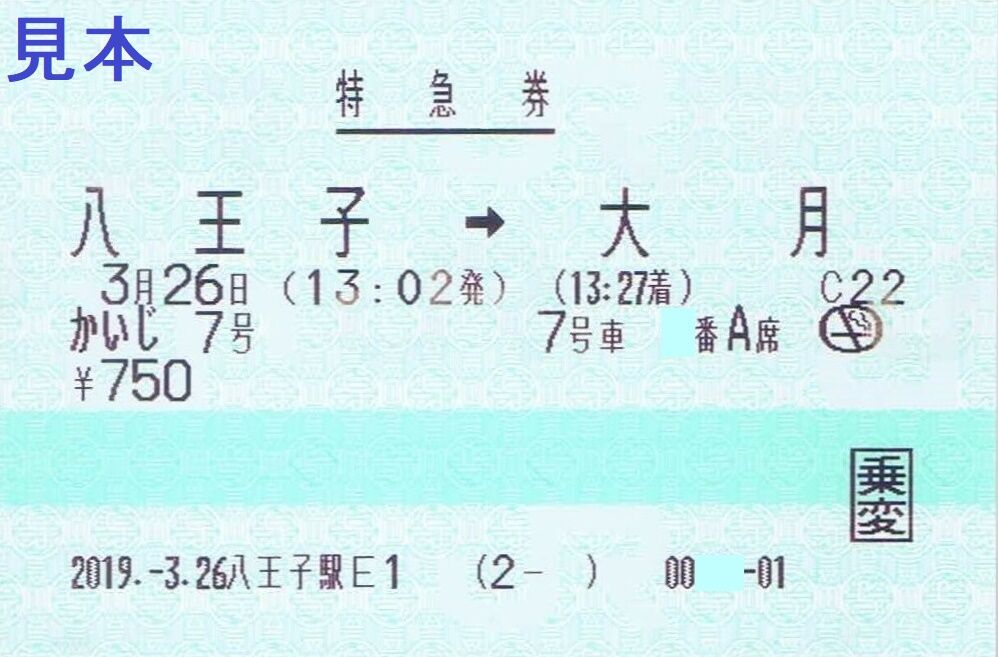 《八王子駅E1発行 かいじ7号特急券(2019年3月26日)》
