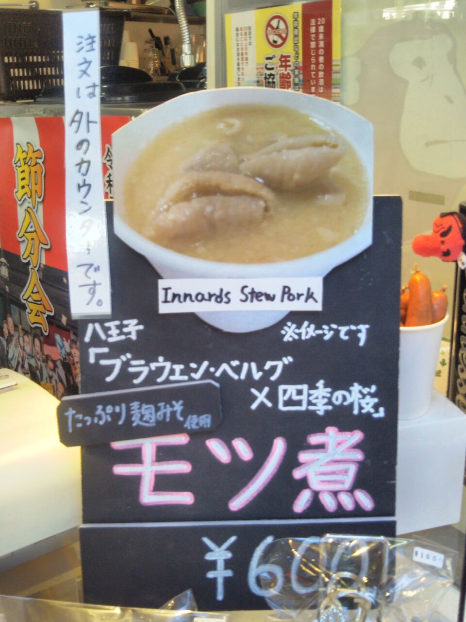 そば店ではない高尾山商店会の高尾山冬そばキャンペーンWチャンス賞対象店舗。八王子ブラウエン・ベルグのモツ煮。税込600円。以前は税込550円で『紅麹みそ使用』となっていたものが『たっぷり麹みそ使用』と変わっていますが、モツは大きく食べ応えありで美味しい。
