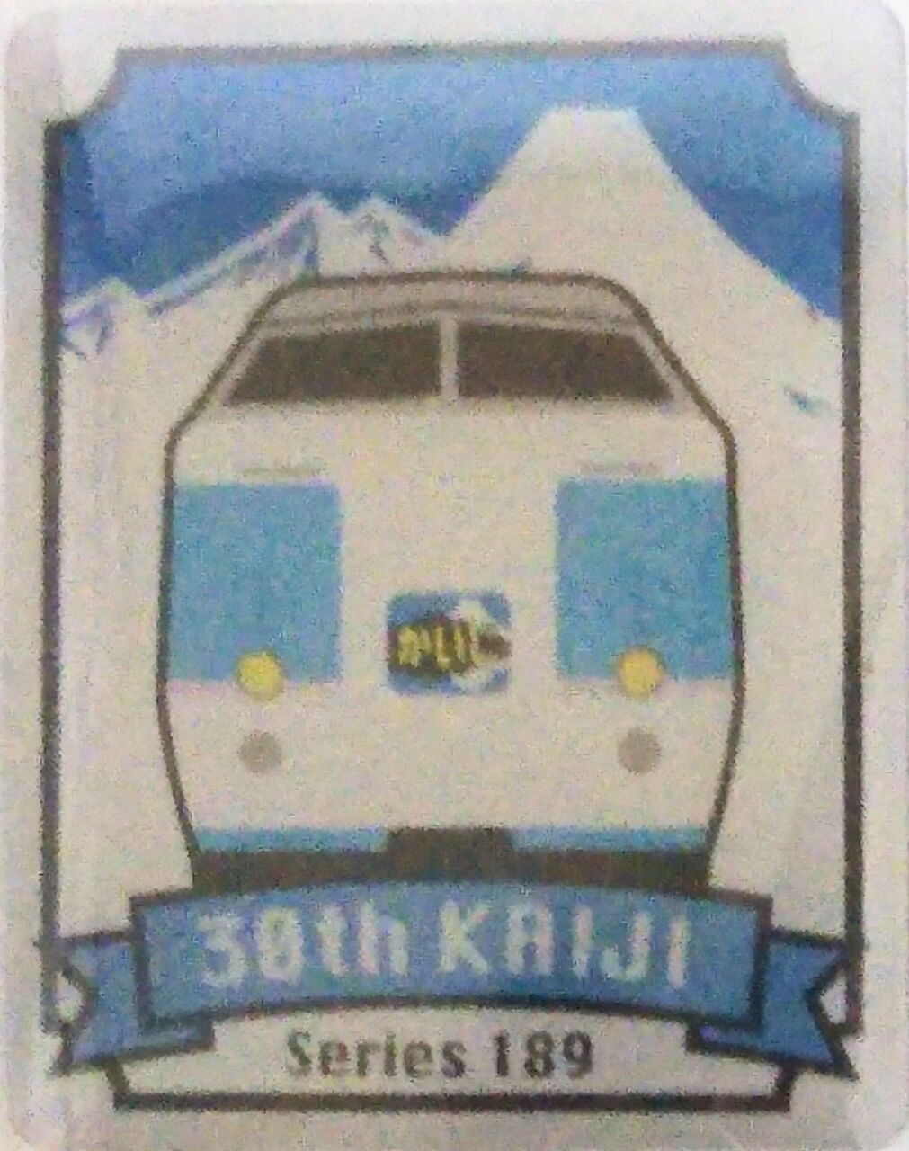 ベックスコーヒーショップ八王子店ではドリップコーヒー5個+記念シールのセットを税込300円で発売しました。写真は記念シールです。《特急「かいじ」号30周年記念ピンバッジ(2018年3月10〜18日配布)》