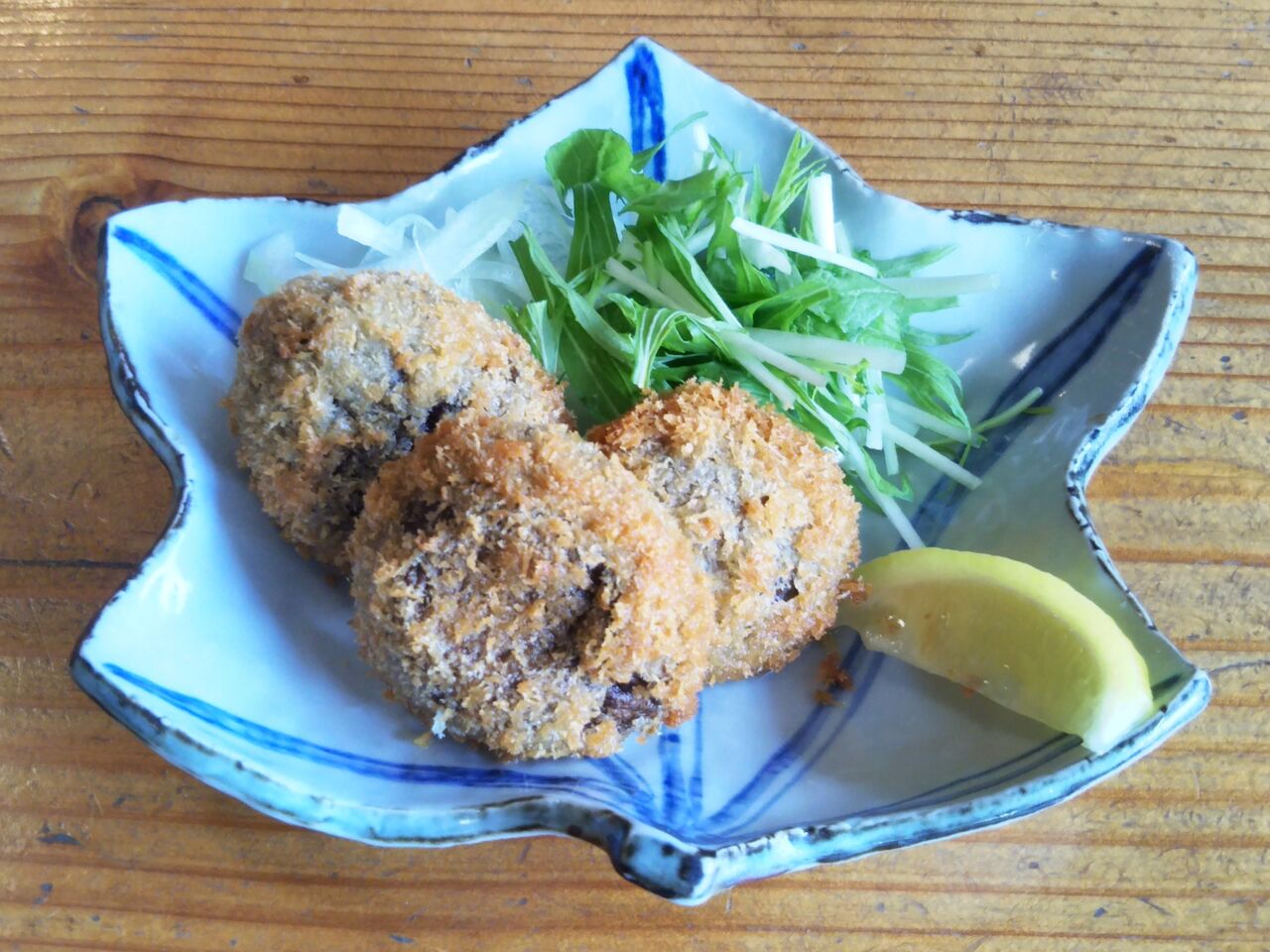 こちらは原木しいたけフライ(税込800円)です。付属するソースをつけて頂きます。