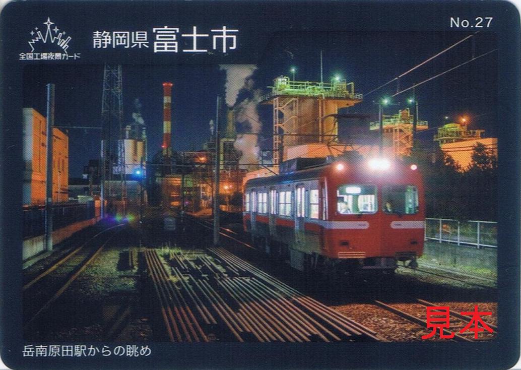 全国工場夜景都市協議会発行で、裏面には2022年(令和4年)1月1日時点の富士市に関するデータが記載されています。2025年1月時点で吉原駅にて夜景電車グッズセット購入者に配布されているカードの1種で鉄カードとサイズ・質感が同じ。《鉄カード 岳南電車8000形(2024年(令和6年)7月)》