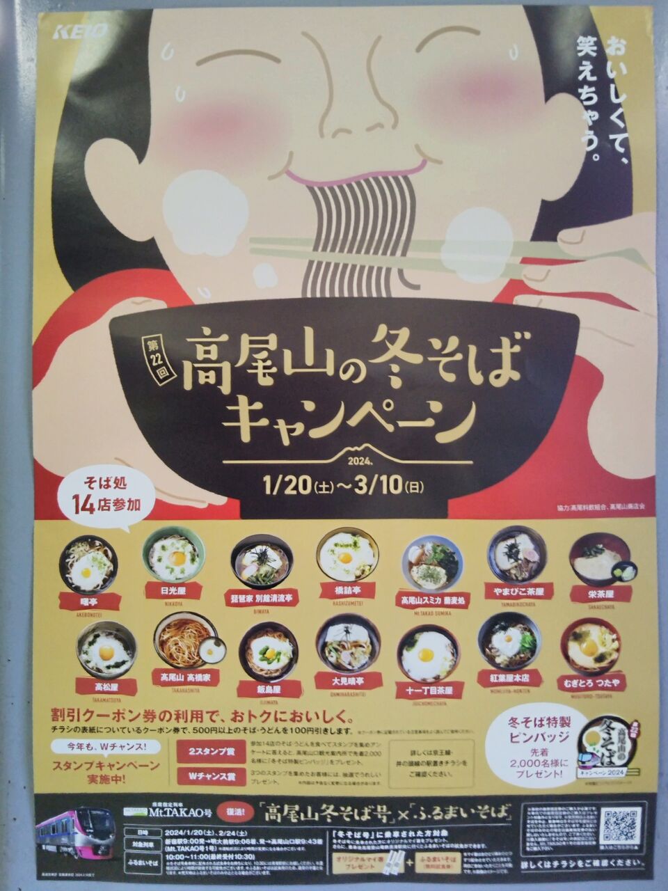 高尾線高尾駅に掲示されているキャンペーンのポスター。高尾山冬そば号(Mt.TAKAO1号)に関する記載あり。
