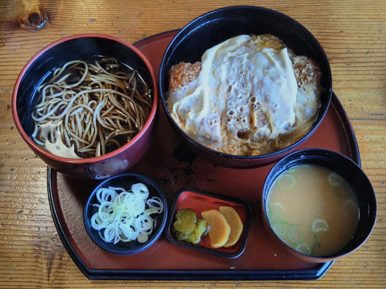 こちらはかつ丼そば付き(税込1,580円。そばは『温』をチョイス)です。こちらの商品はそば単体では税込300円という計算になり、先述の割引クーポン対象外ですが、キャンペーンスタンプは頂けました。『冷』と『温』のそばを同時食べ比べはあまりしていなかったですが、冷の濃い味付とは対照的に温は甘みを感じます。