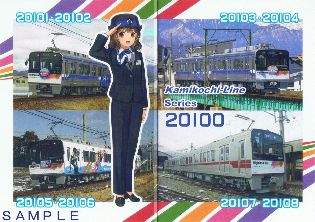 写真は内側。20100形全編成の写真とイメージキャラクター・渕東なぎさのイラスト。